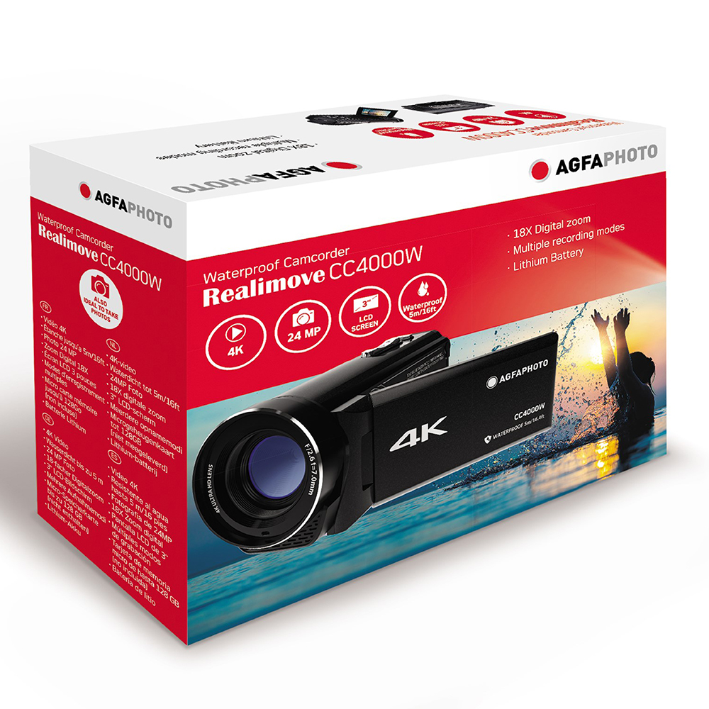 AgfaPhoto CC4000W caméscope numérique Caméscope portatif 24 MP 4K Ultra HD Noir