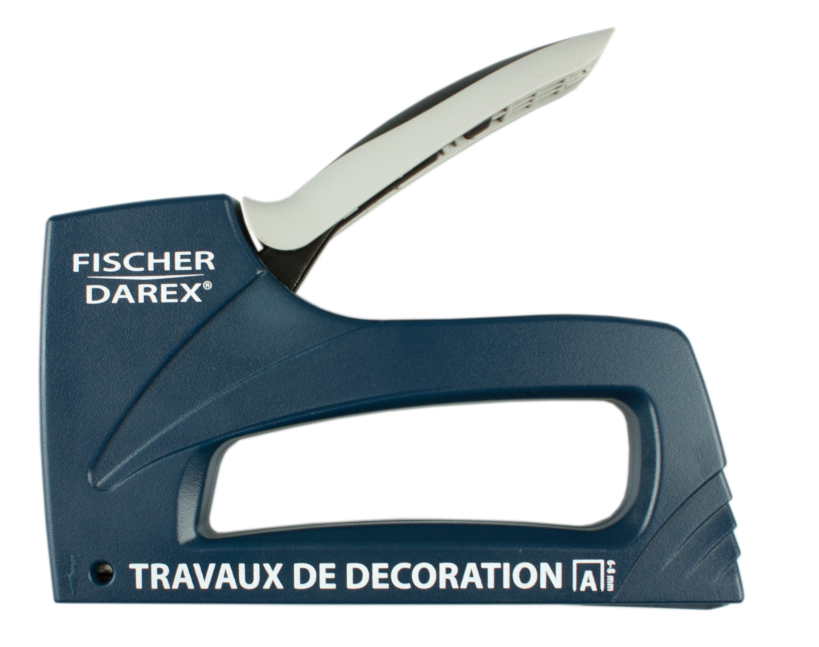 agrafeuse pour travaux de décoration en plastique Idéale pour tous travaux domestiques. Pose de moquettes, textiles, câbles, lambris... Corps de l’agrafeuse en plastique renforcée Poignée ABS Fenêtre permettant de visualiser les agrafes et savoir si la barrette est à changer Blocage de la poignée Référence Agrafes
