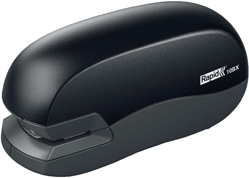 RAPID - Agrafeuse électrique Fixativ 10 BX - Noir  . Agrafeuse électrique compacte sur piles pour le bureau, la réception ou la maison. Pratique pour tout usage mobile, en mouvement ou sur le bureau. Ouverture par l'avant pour une recharge aisée..