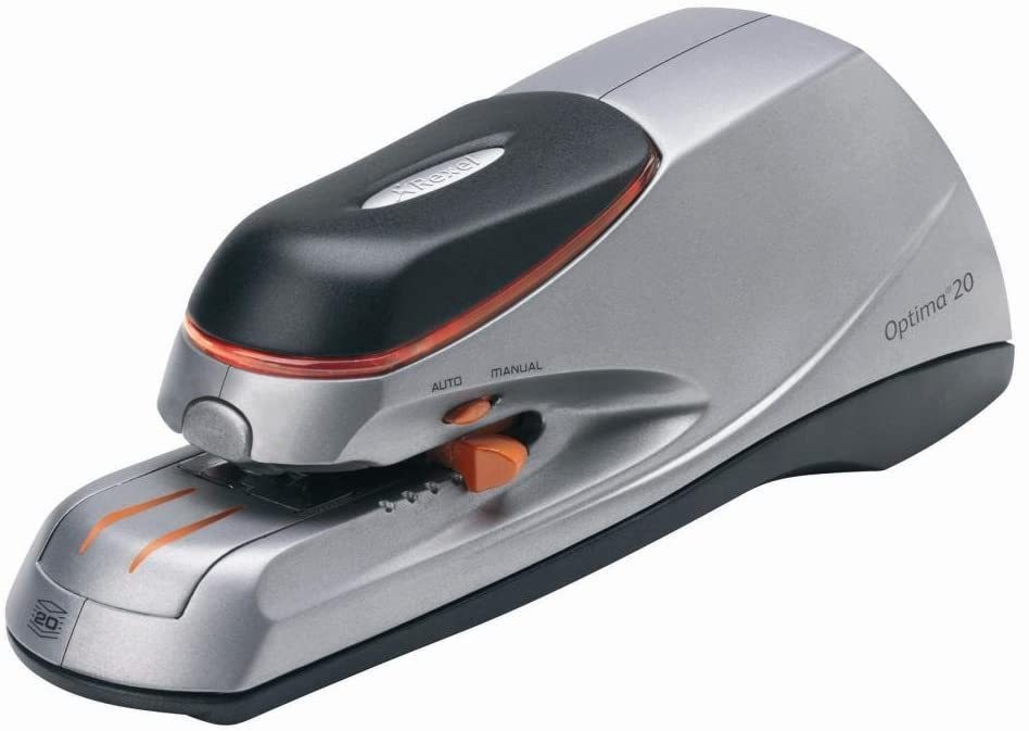 RAPID - Agrafeuse électrique Optima 20 . Pour un agrafage sans effort. Entièrement automatique ou à commande manuelle. Positionne précisément les agrafes sur le papier à l'aide du guide intégré et assure un agrafage sans enrayage avec les agrafes Optima 56. L'indicateur LED de niveau d'agrafe vous avertit avant que le magasin ne soit vide. Idéale pour le bureau, les lieux d?accueil ou les guichets..