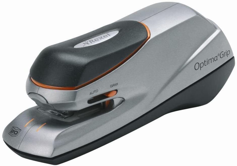 RAPID - Agrafeuse électrique Optima Grip . Format compact pour une utilisation sur le bureau ou à une main. Agrafage automatique ou contrôlé manuellement. Utilisation avec adaptateur secteur ou piles. Agrafes incluses. Idéales pour le bureau, les lieux d?accueil ou les guichets..