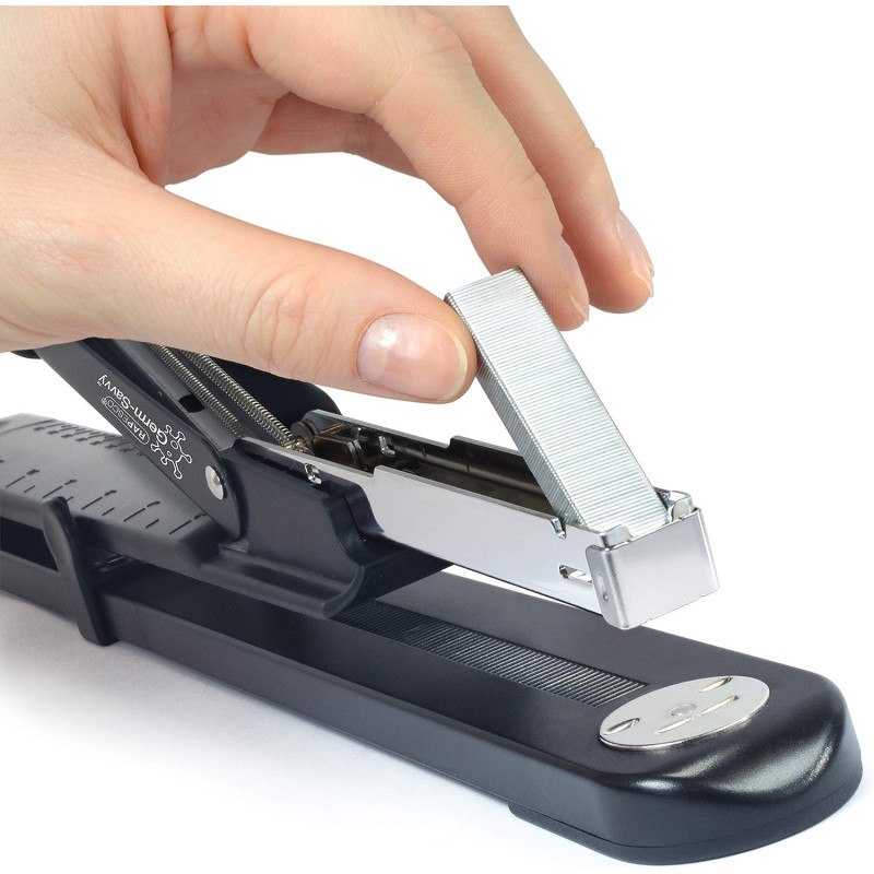 - Design Robuste et Durable: La construction intégrale en métal de l'agrafeuse Marlin assure une robustesse et une longévité exceptionnelles. Le rechargement simple et efficace par le dessus vous permet de continuer votre travail sans interruption.