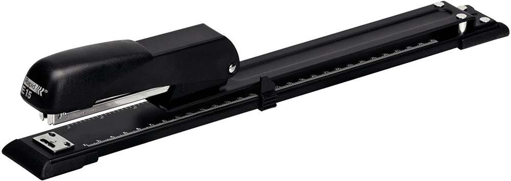 RAPID - Agrafeuse long bras Economy E15, en métal . Agrafeuse long bras qui vous permet d'agrafer au milieu des feuilles. Mode brochage. Parfait pour les services courrier, les imprimeries et les agences de publicité..
