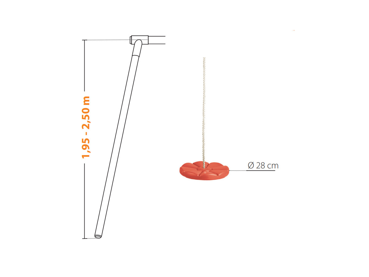 Balançoire disque Soulet pour portique 1,95 à 2,5 mUn agrès pour portique indispensable que les enfants vont adorer !Cette balançoire disque sera rapidement un agrès que les enfants vont adopter. Pour des aventures et des défis ou tout simplement pour se balancer, ils ne pourront plus s'en passer.Elle se compose d'une corde avec anneaux pour portiques de 1,95 à 2,5 m et d'un disque en plastique de Ø 28 cm. Dimension du disque Ø 28 cm.Pour des hauteurs de 1,95 - 2,5 mPour enfants de 3 à 12 ans (50 kg max)Ne convient pas aux enfants de moins de 36 moisRéservé à un usage familial en extérieurLe marquage CE vous garantit que le produit satisfait aux exigences de sécurité imposées par la réglementation européenne.Ce produit a été testé par un laboratoire indépendant suivant les exigences des normes EN 71 parties 1, 2, 3 et 8. / Âge:3 à 12 ans / Compatibilité:Portique de 1,95 à 2,50 m / Couleur:Rouge / Marque:SOULET / Matière(s):Polyéthylène / Poids maximum supporté:50 kg / Type d'agrès / Accessoire:Balançoire