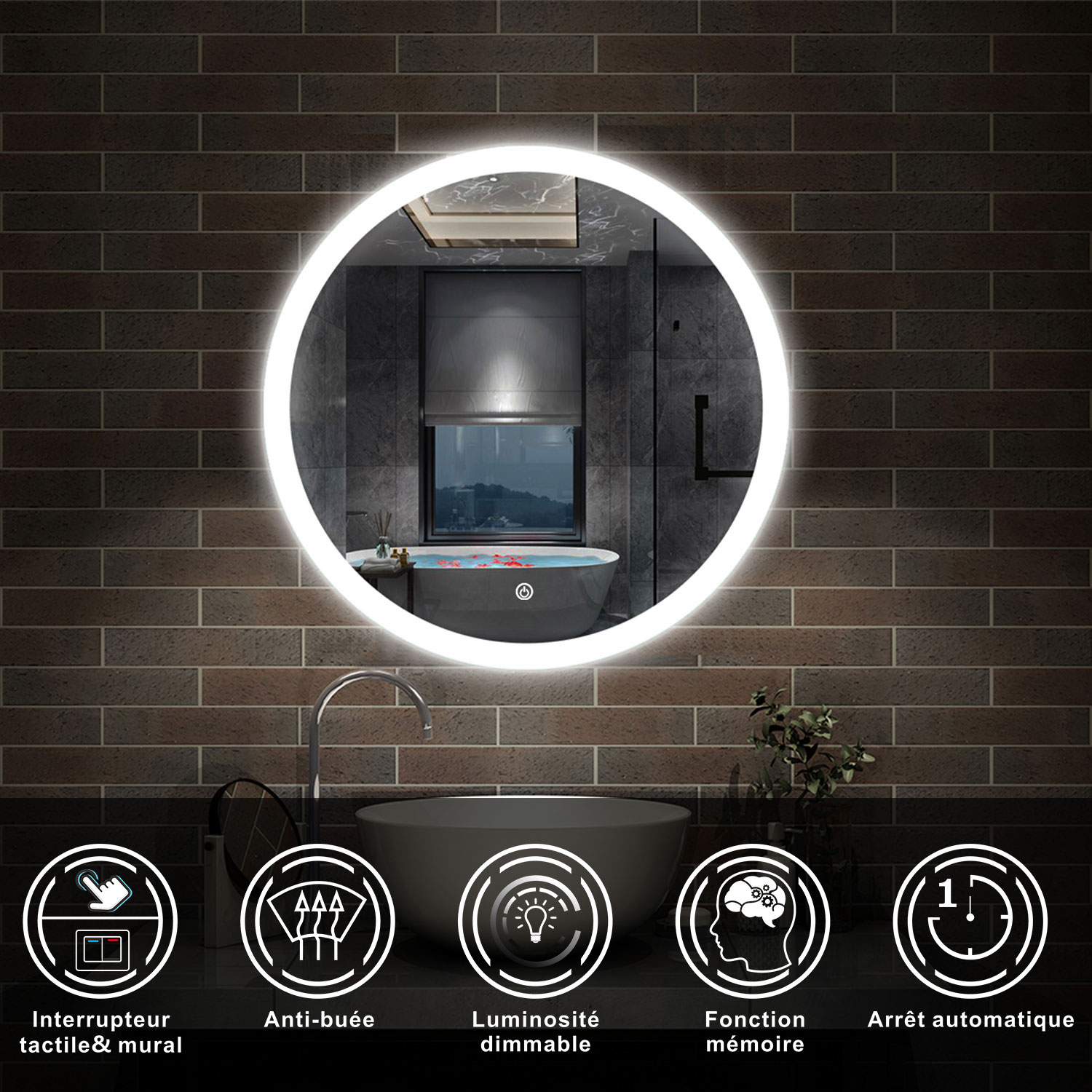 | Libellé | AICA Miroir de salle bain Rond avec anti-buée, Lumière Blanc du jour |