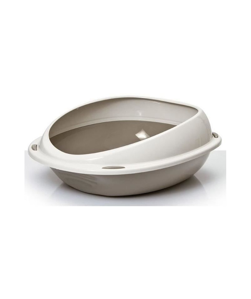 Bac a litiere ovale taupe et beige - Il possede une hauteur d'entrée basse pour faciliter l'acces de votre chat - Le Bac a litiere pour chat Shuttle de Aime est équipé d'un rebord de protection amovible, qui assure une propreté optimale de la piece, en évitant les projections d'urines ou de litiere - 57 x 40 x 19 cm.