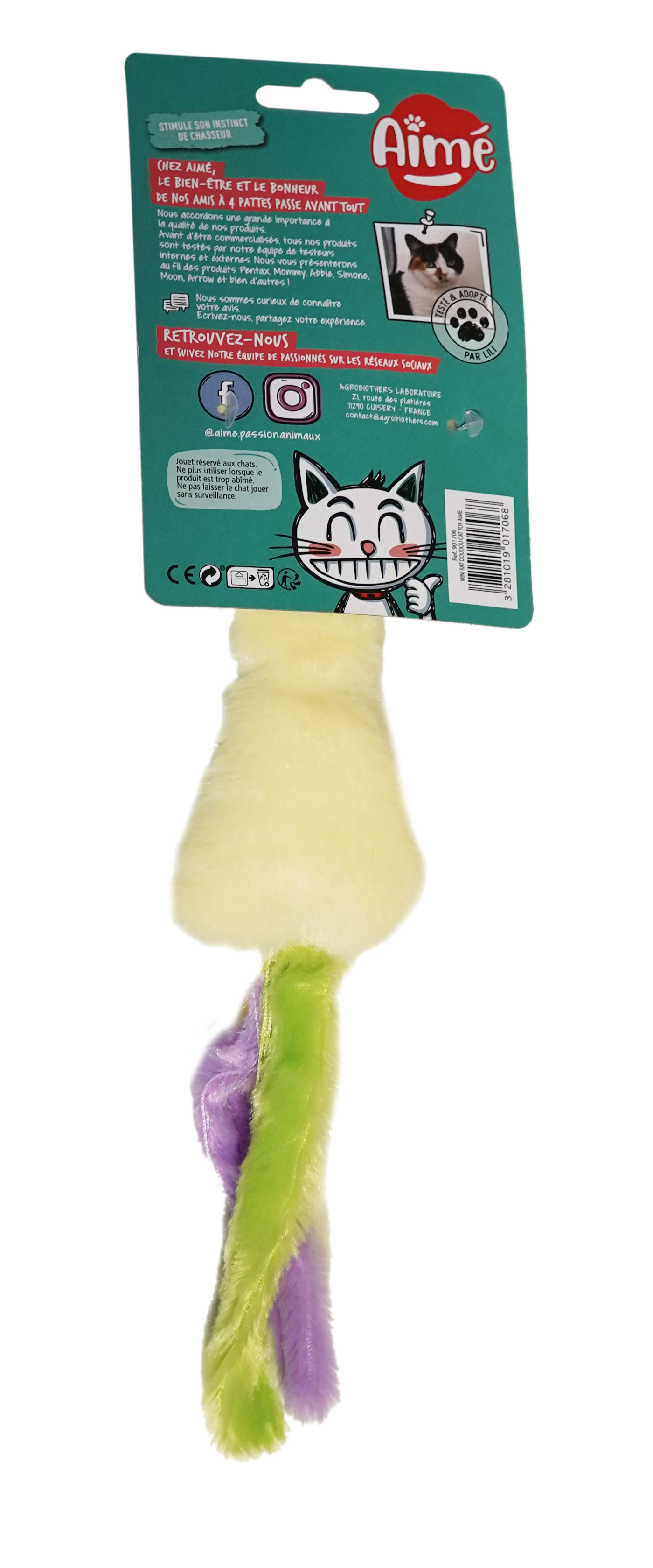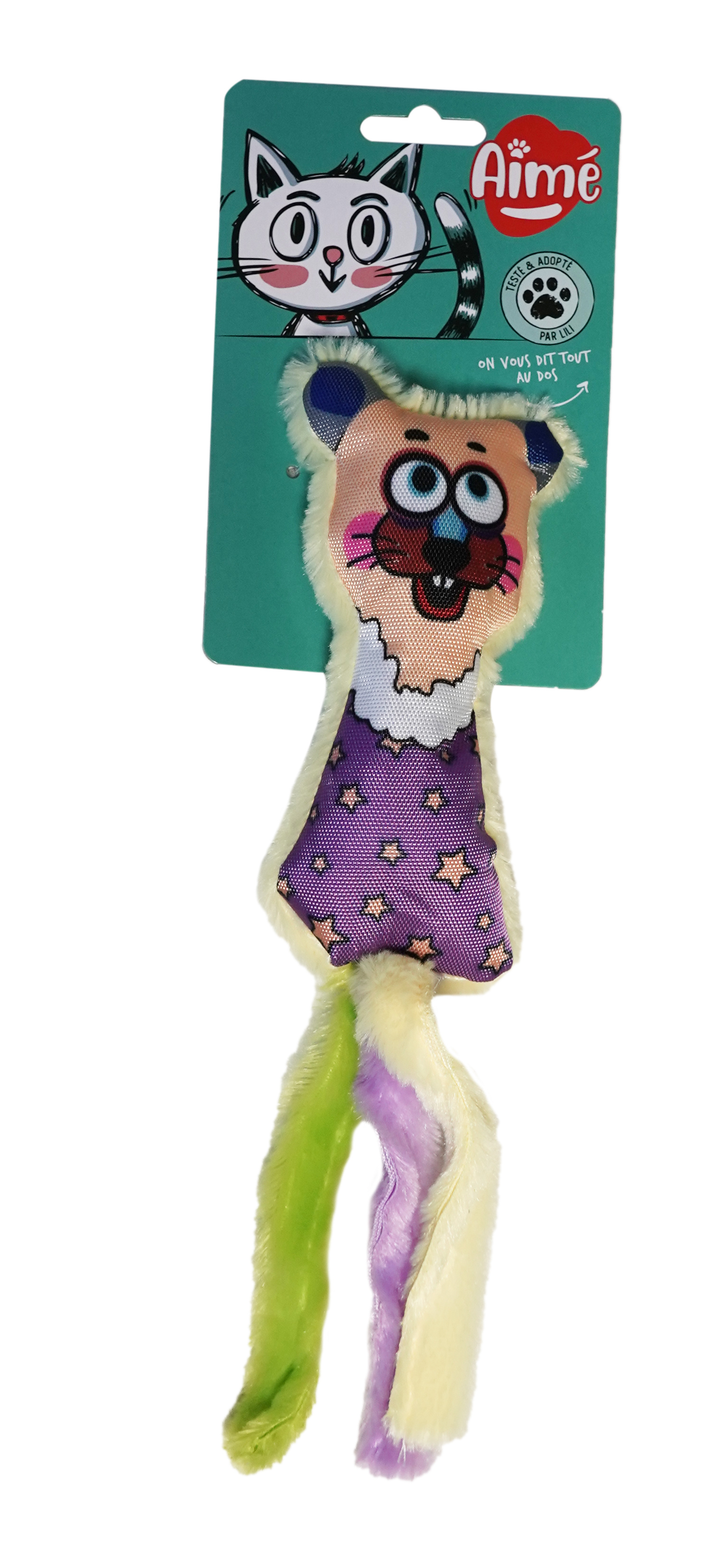 Double effet : de la corde épaisse et une peluche extra douce en velours. Le bon mix pour jouer et câliner.