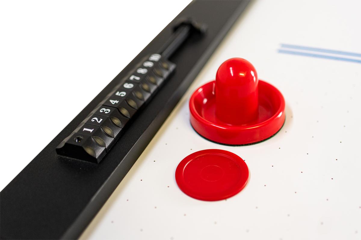 Robuste table de air hockey avec surface de jeu lisse permettant un jeu fluide. Surface de jeu en panneau de médium 31 mm micro percée avec système d'air pulsé. Compteur de point manuel. Livré avec 4 pousseurs et 4 palets. Moteur 220 volt avec interrupteur.