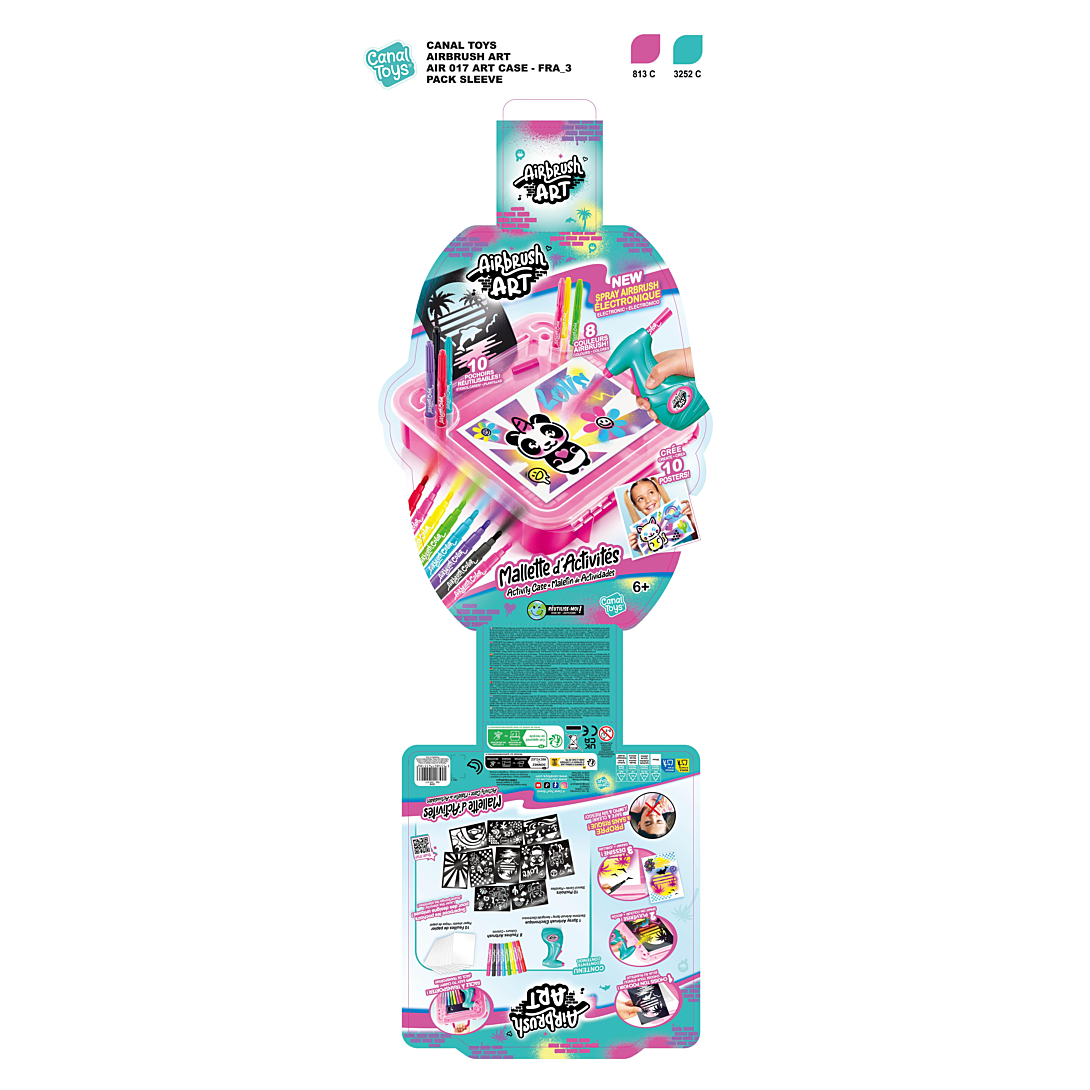 Crée de fantastiques dessins avec la mallette Airbrush Art ! Elle contient tout ce qu'il te faut pour créer des dessins uniques : spray électronique, feutres, pochoirs, feuilles de dessin… Ré-utilise la mallette pour ranger et transporter tes projets !