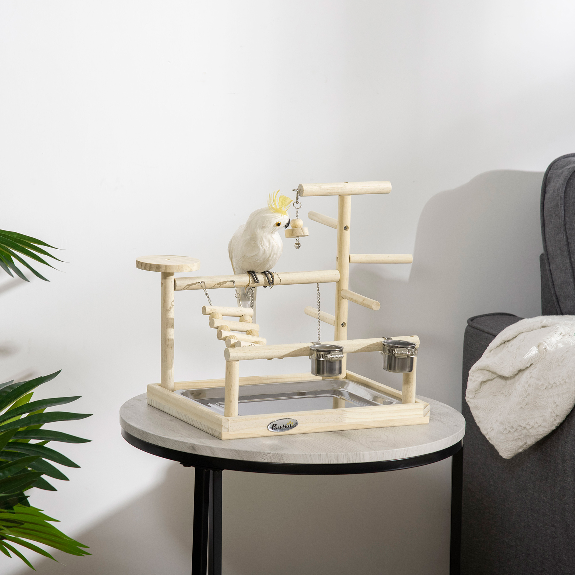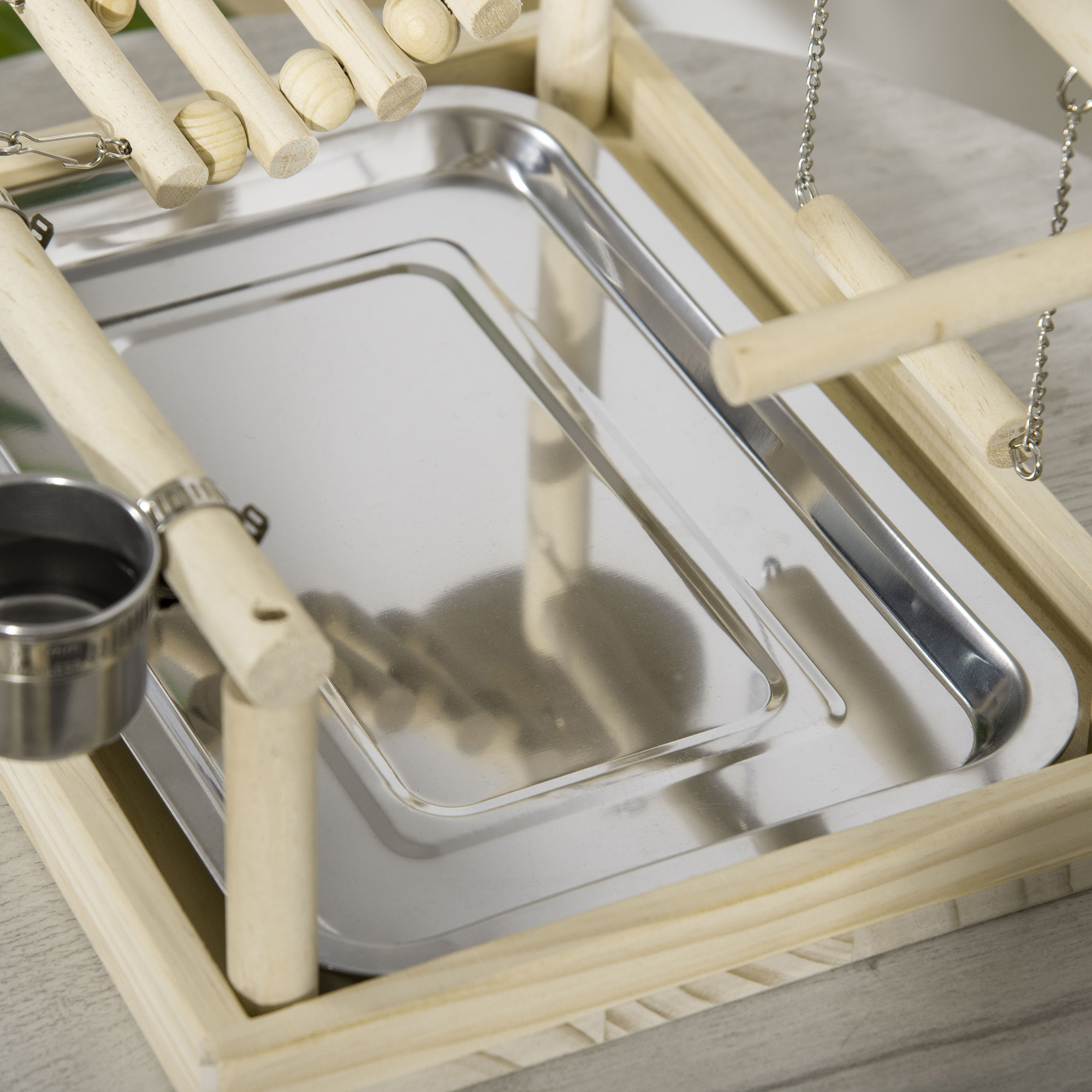 - Stands de jeu de perroquet ou perruche avec socle en bois et plateau acier inox. pour garder le centre d'activité propre