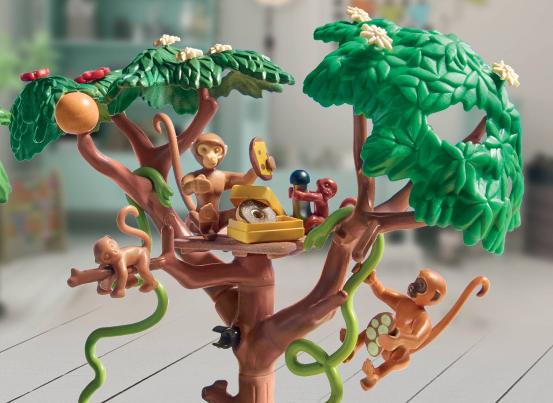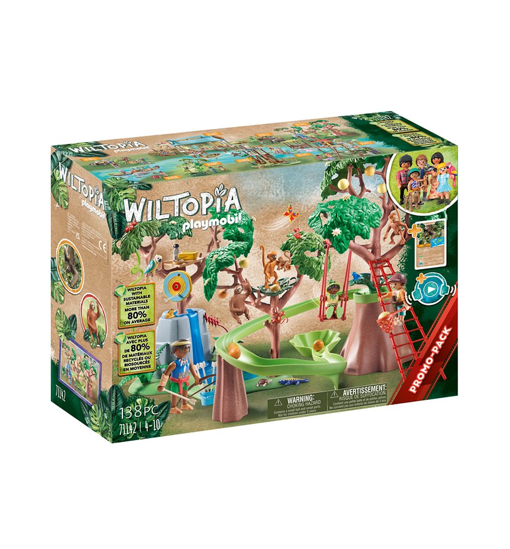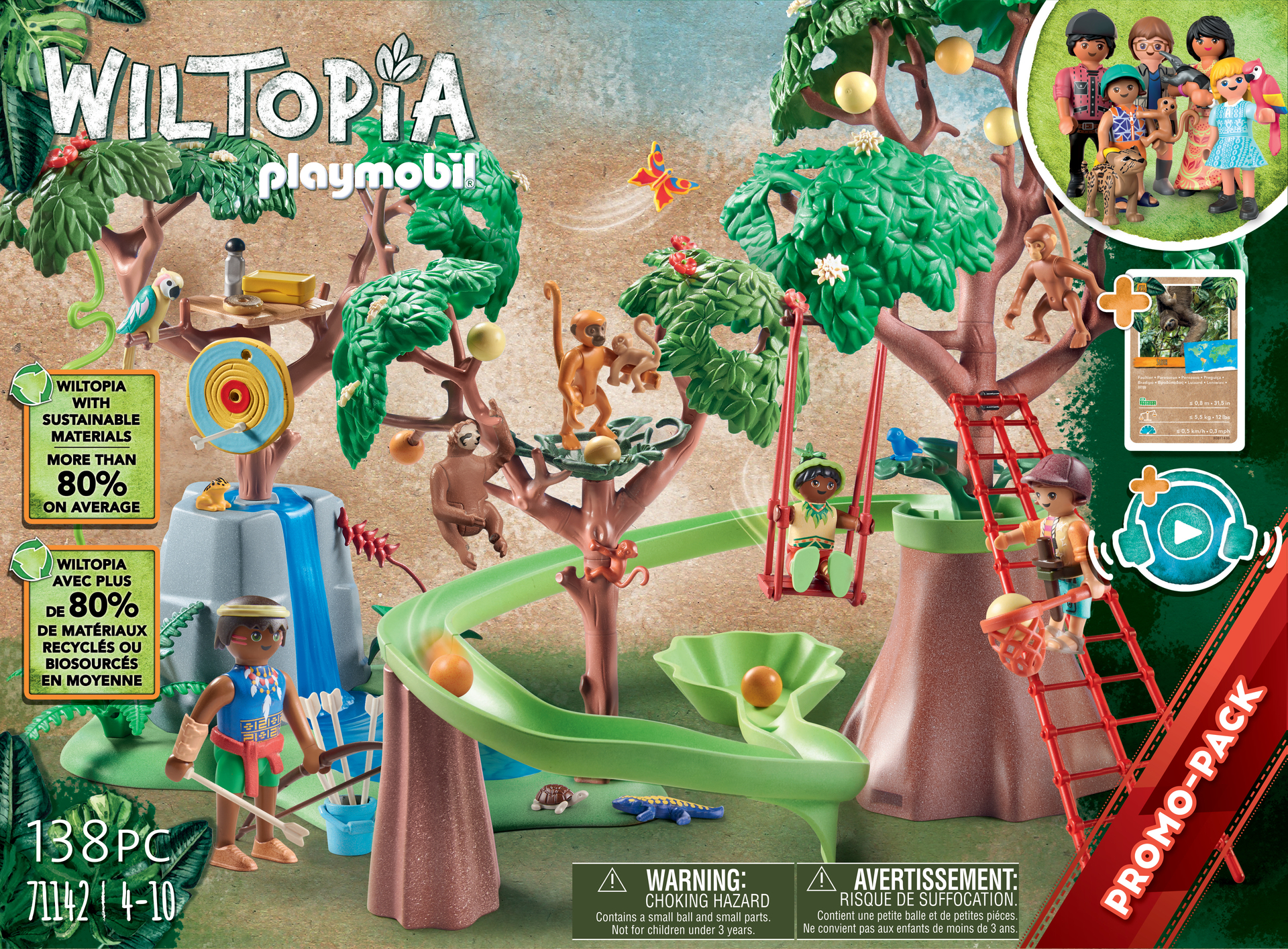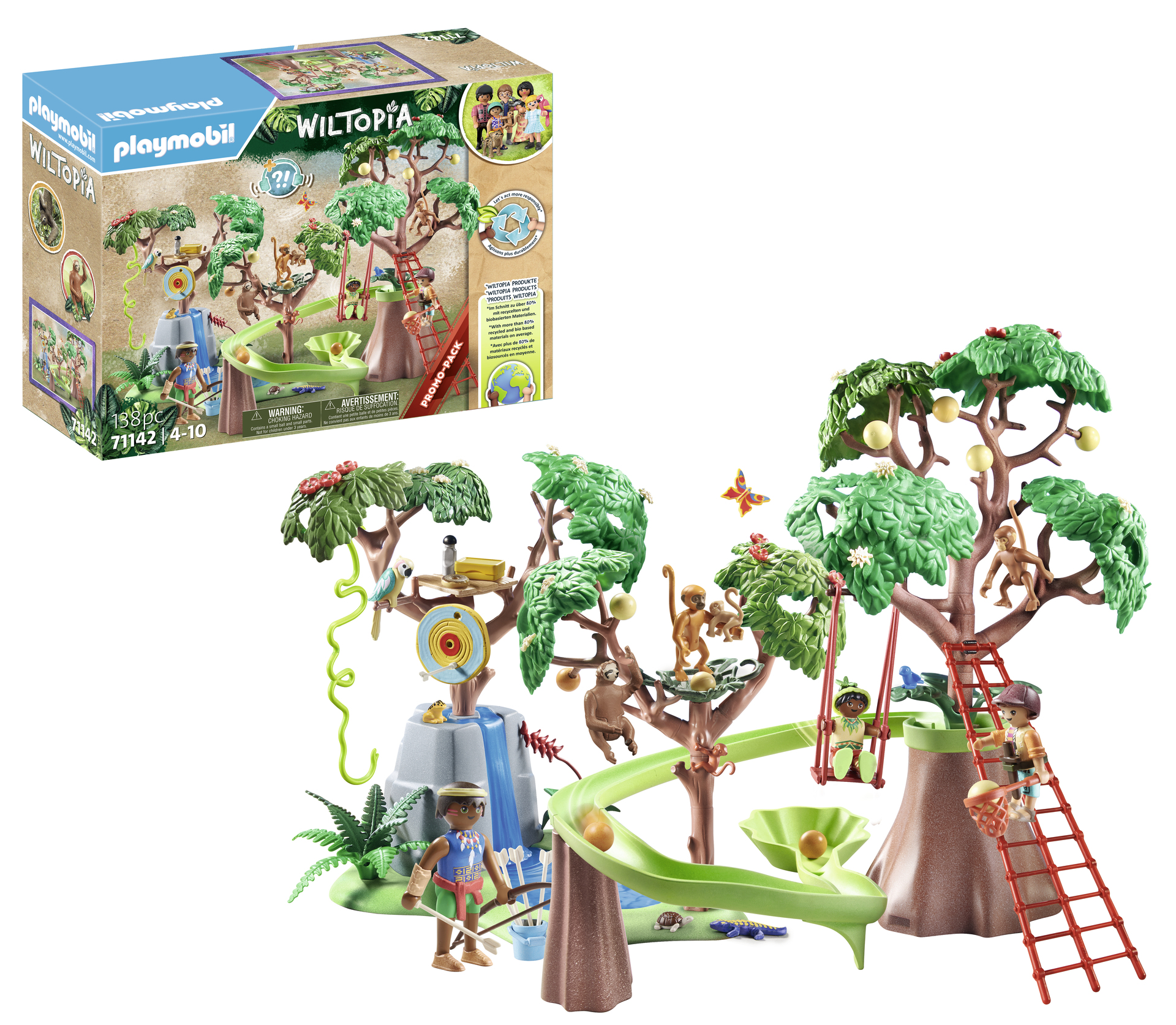 L'aire de jeu tropicale est sans conteste l'un des endroits préférés de Lu Palmer. Elle s'amuse souvent à défier les singes au concours d'escalade entre les branchages. Outre l'escalade, le point d'eau permet de faire quelques mouvements de brasse. De plus, les installations situées de part et d'autres de l'aire de jeu permettent d'y pratiquer le tir-à-l ‘arc. Et bien sûr, comme autant d'activités creusent l'appétit, il est possible de se rassasier facilement avec de délicieux fruits frais. Pour cela, rien de plus simple. Il suffit simplement de faire glisser les fruits le long du toboggan, pour les récolter en bas. Le set comprend trois personnages et leurs accessoires ainsi que de nombreux animaux pour enrichir l'expérience de jeu.