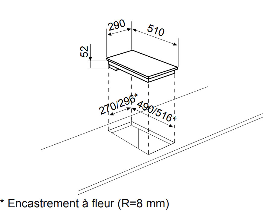 Dimensions d'encastrement 270 x 490 x 53 mm