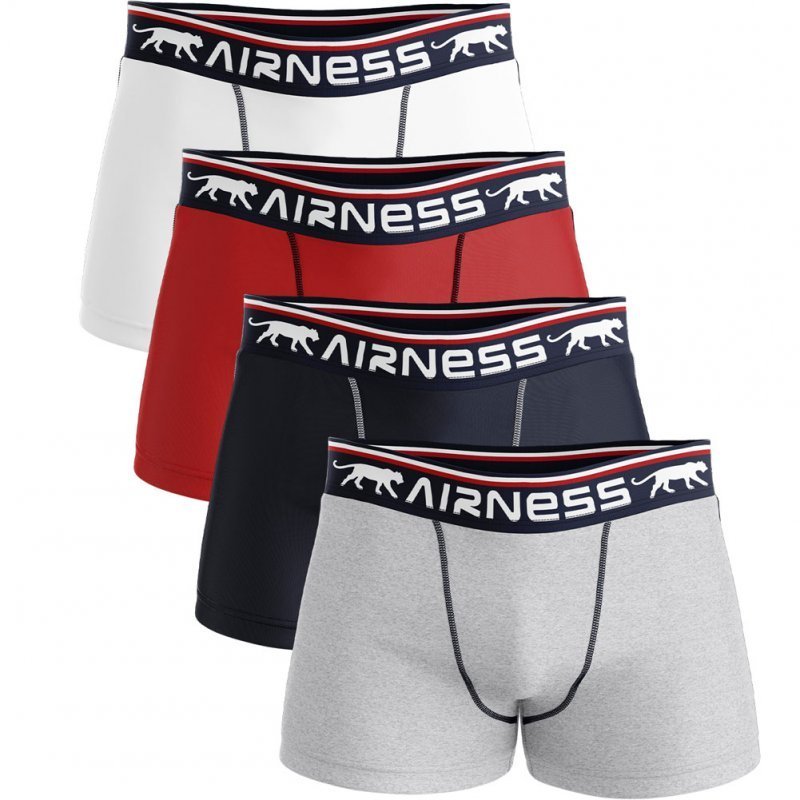 AIRNESS Lot de 4 Boxers Homme Coton CASUAL Blanc Marine Rouge Gris