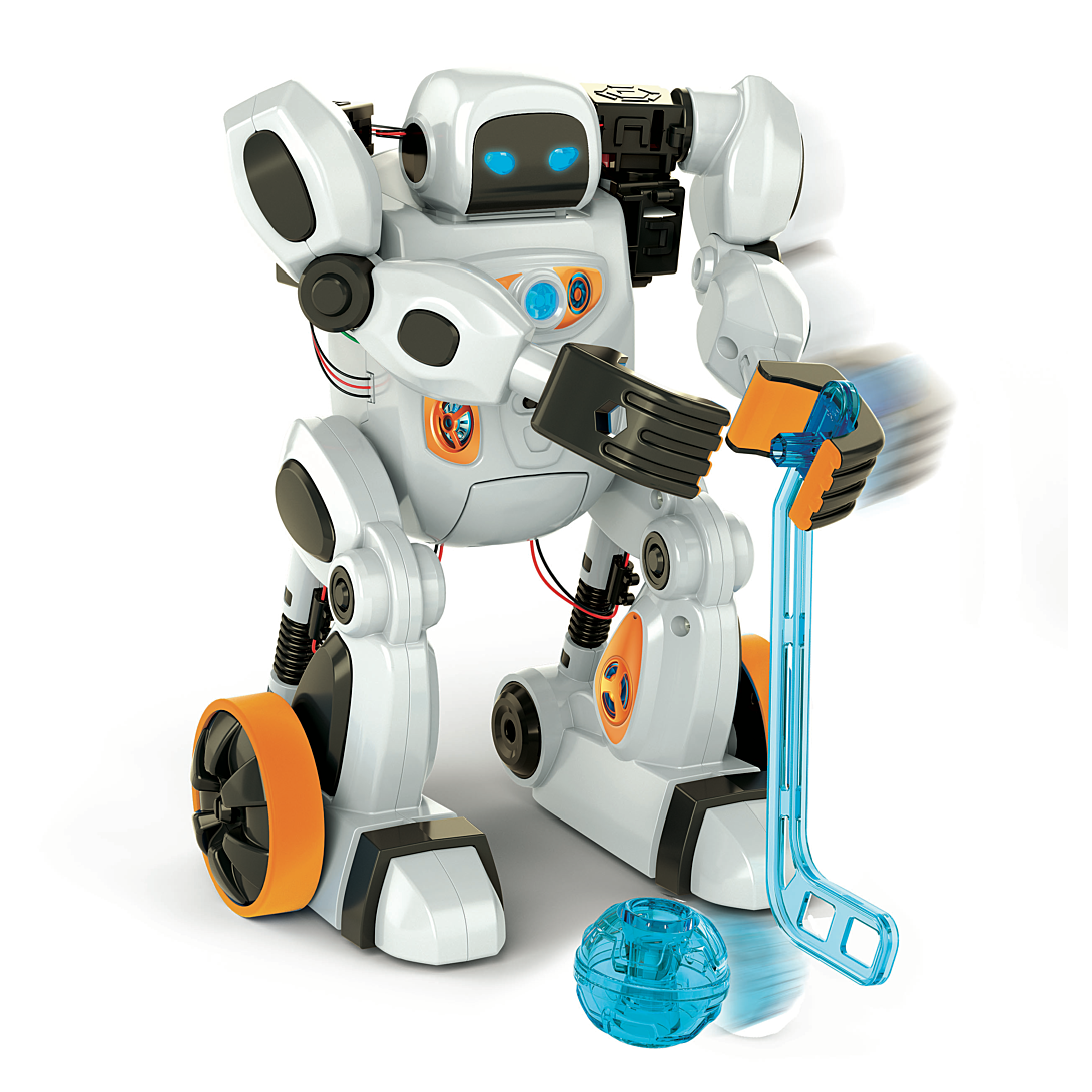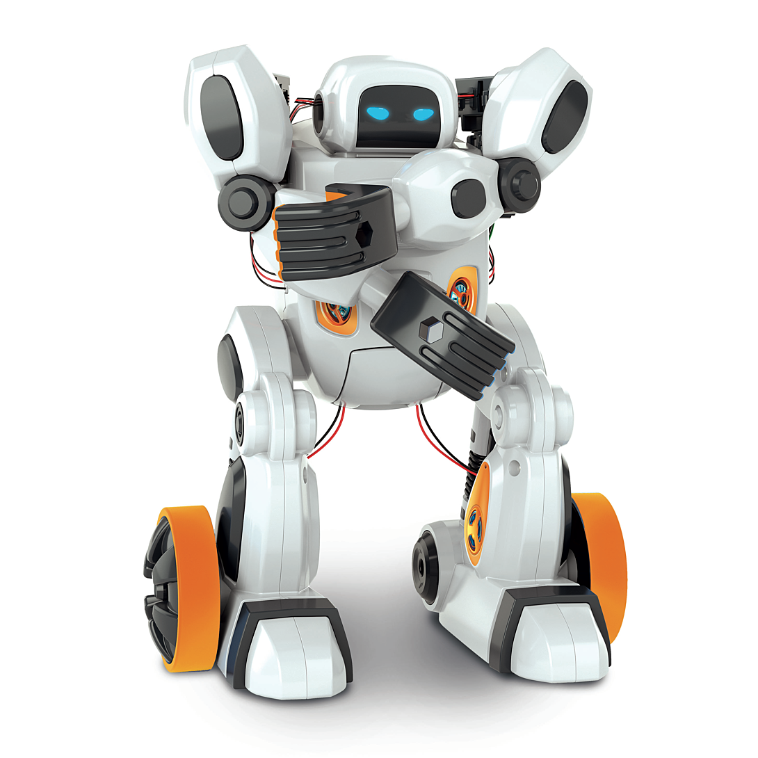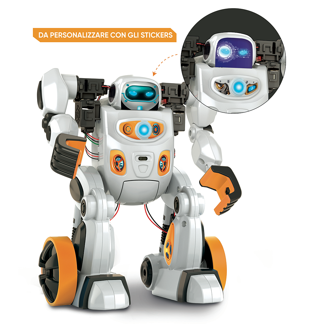 • Un robot innovant à assembler, doté d'une intelligence artificielle qui lui permet de reconnaître les gestes et les commandes vocales. • Personnalise ton robot en l'entraînant à reconnaître tous les gestes que tu souhaites et amuse-toi avec lui à travers de nombreuses activités amusantes. • 6 moteurs lui permettent d'effectuer tout type de mouvement : se déplacer dans toutes les directions ou encore lever les bras. • Dans le mode "Apprentissage", place-toi face à la caméra de ton smartphone, réalise un mouvement avec ses bras que le robot apprendra et répètera à son tour. Le mouvement sera mémorisé et pourra être associé à une commande vocale. • Dans le mode "Jeu", programme ton robot ou utilise les commandes vocales et les gestes en temps réel après les avoir enseignées au robot. Tu pourras ainsi faire faire toutes sortes d’activités à ton robot : attraper, pousser, danser, faire du sport...