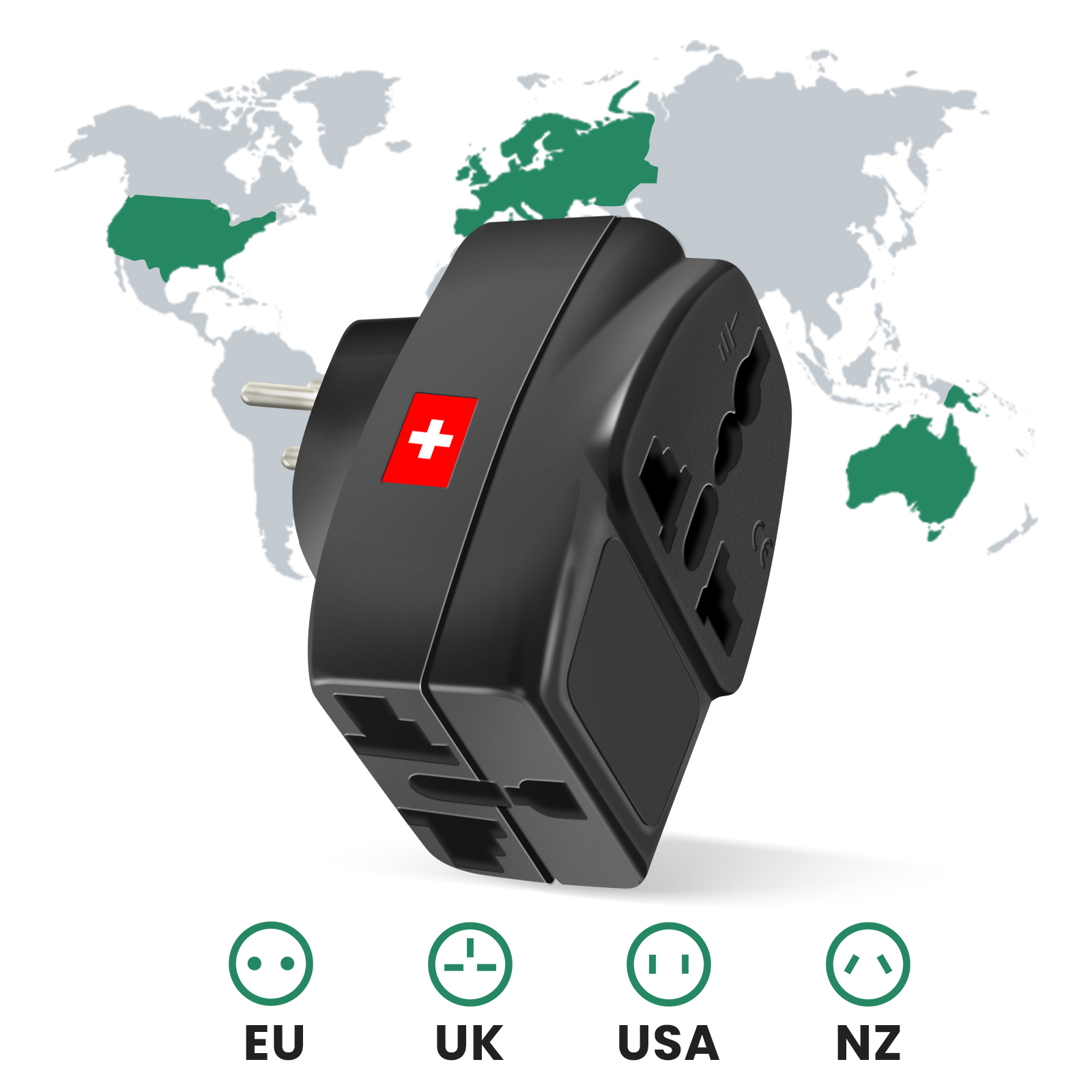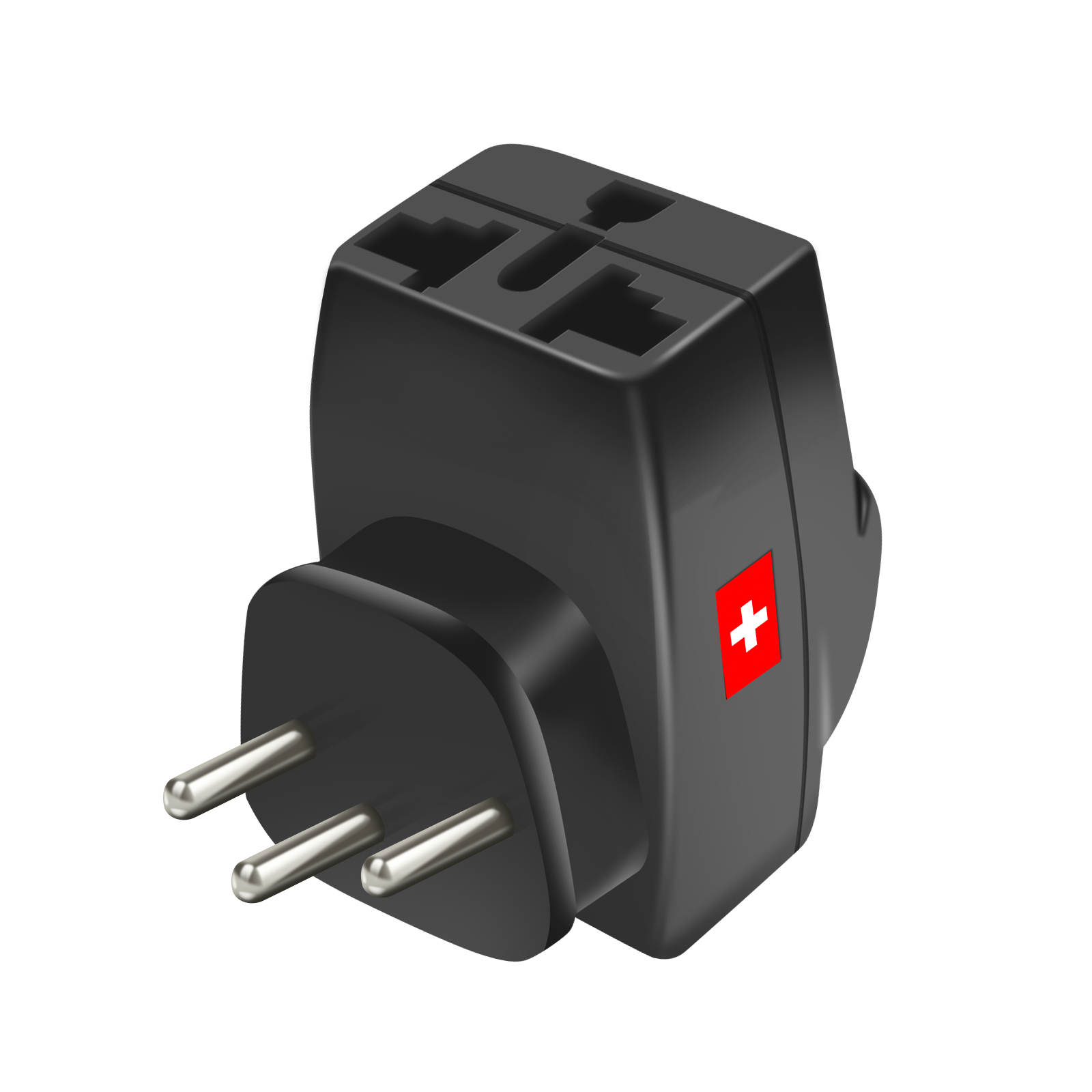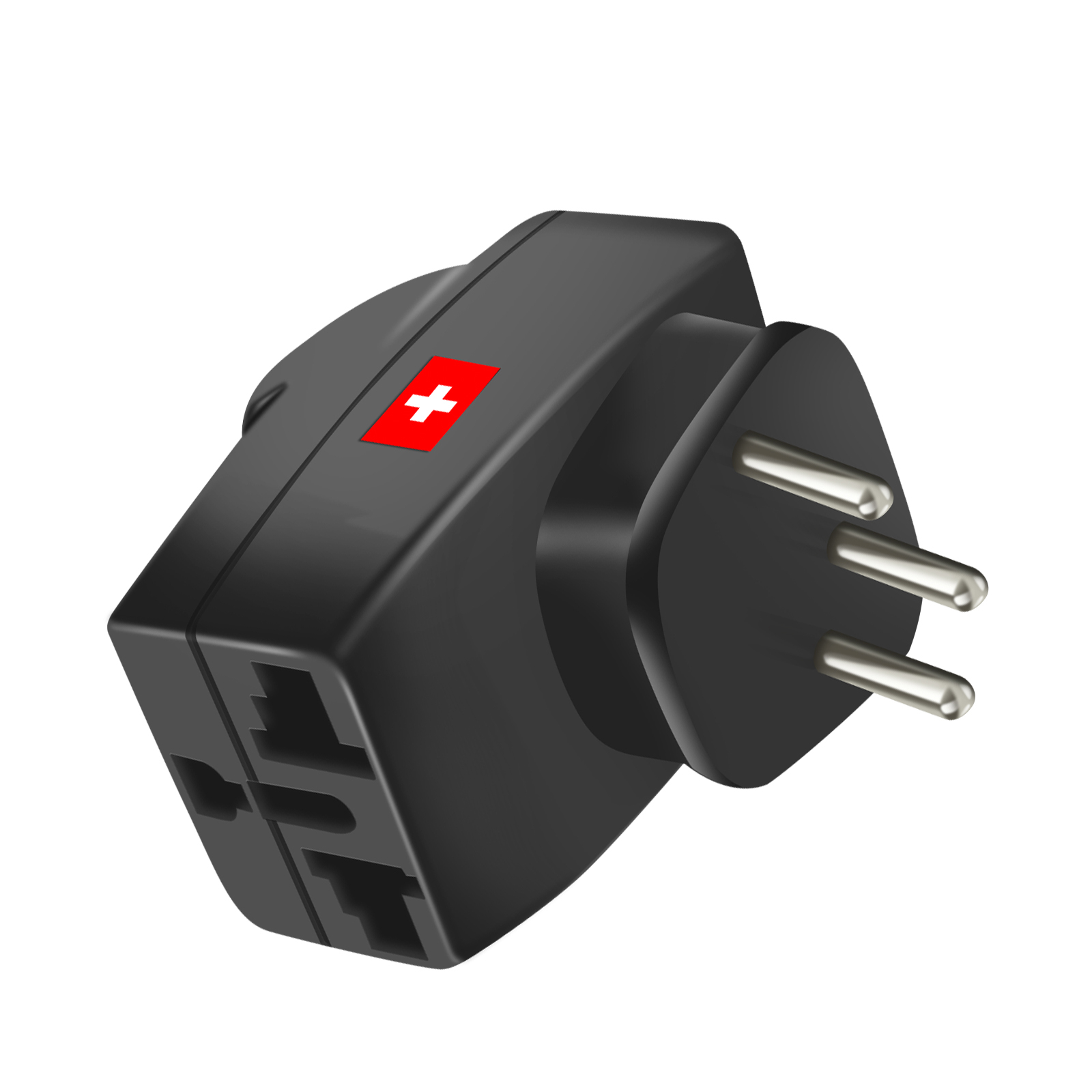 Akashi Adaptateur de Voyage Prise Type J Suisse 3 sorties Universelles Noir