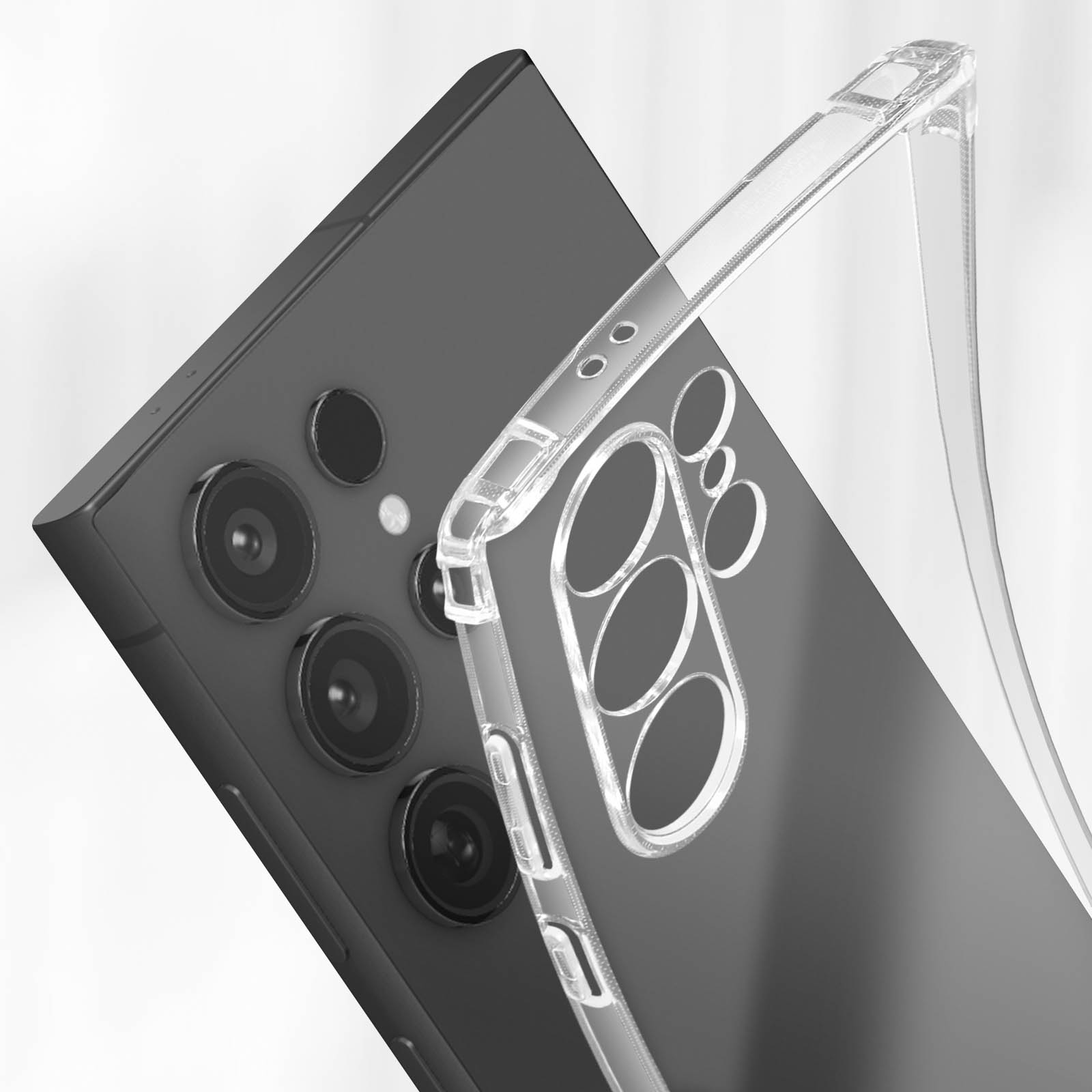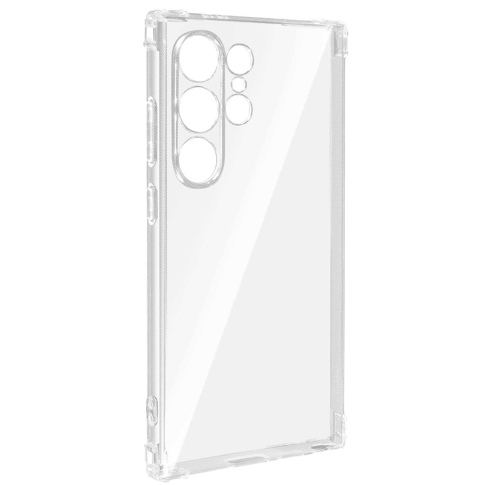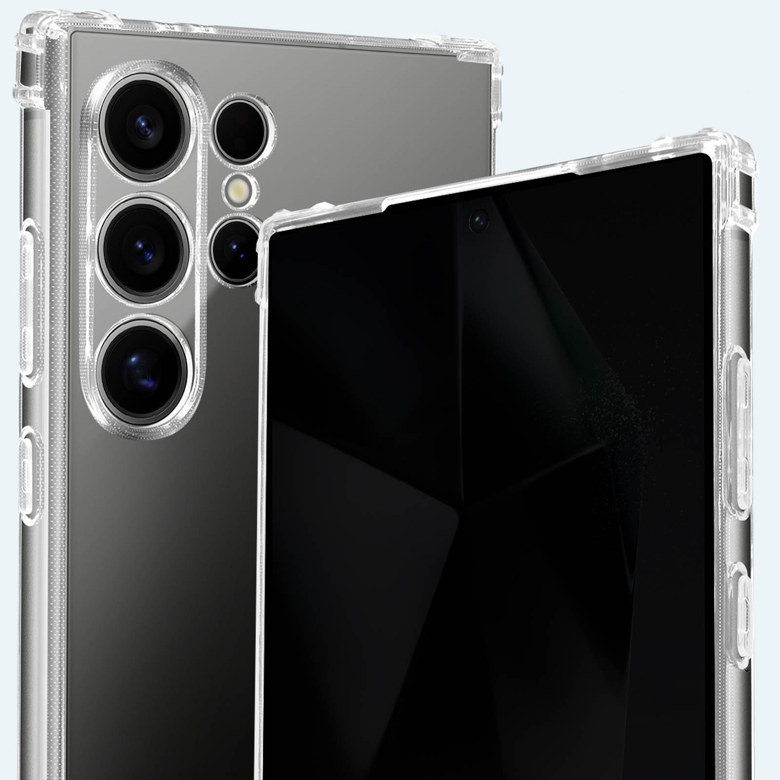 Coque antichoc pour Samsung Galaxy S24 Ultra, Akashi. En silicone souple avec des coins renforcés. Bords surélevés. Transparence parfaite conservant le design du téléphone. Fine et légère. Fonctions accessibles et boutons redessinés. Installation facile.