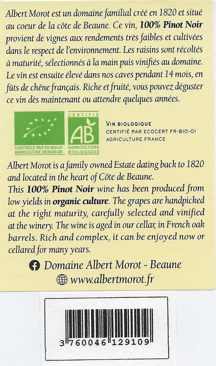 | Libellé | Albert Morot La Bataillère BIO, 2019 - Savigny-lès-Beaune 1er Cru AOC - Rouge - 75 cl - étiquette abîmée |