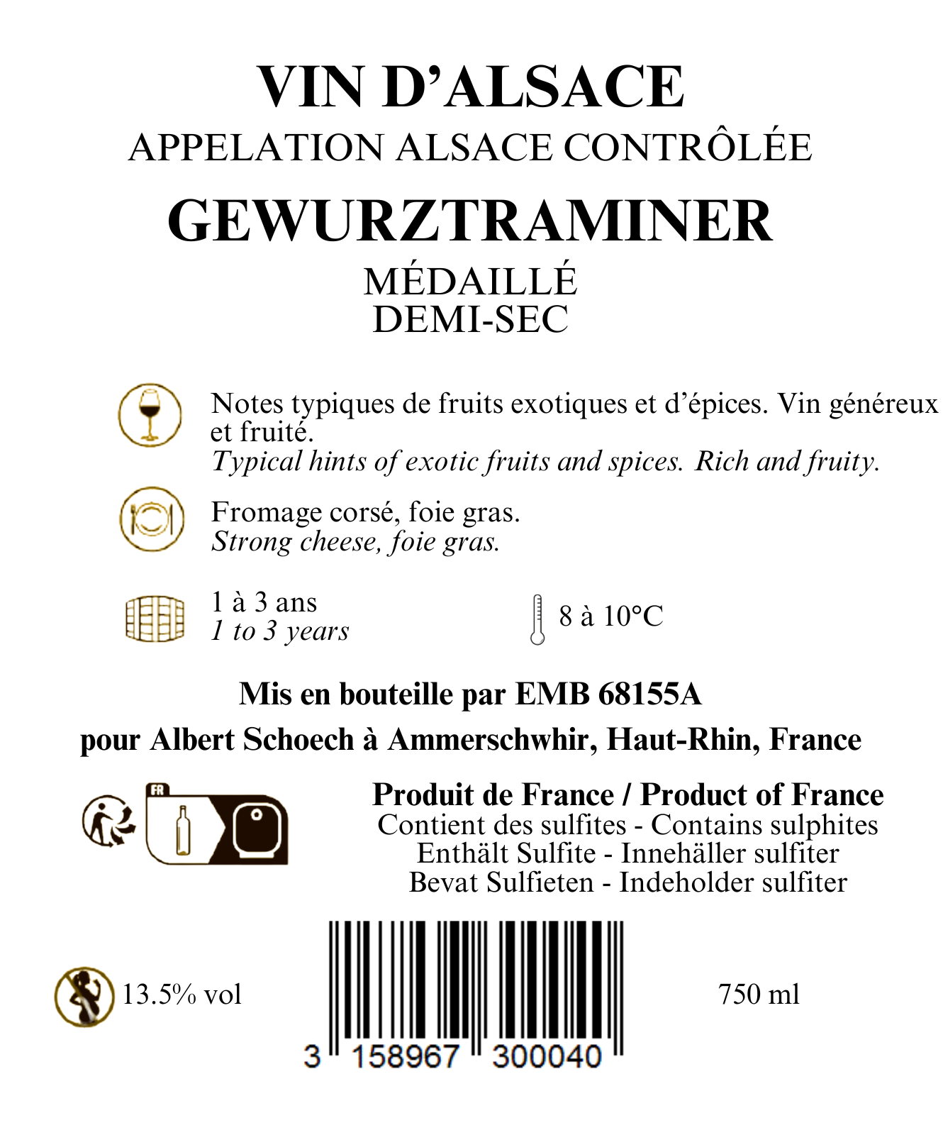 | Appellation viticole | Alsace Gewurztraminer |