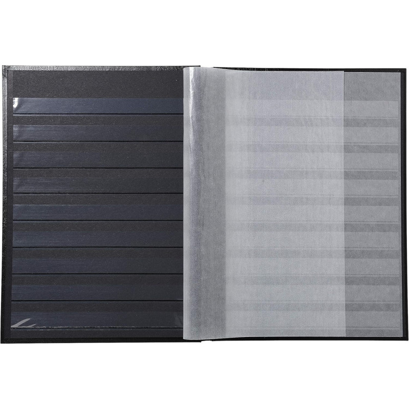 • Pages intérieures : Papier noir épais avec 9 bandes en acétate haute transparence par page