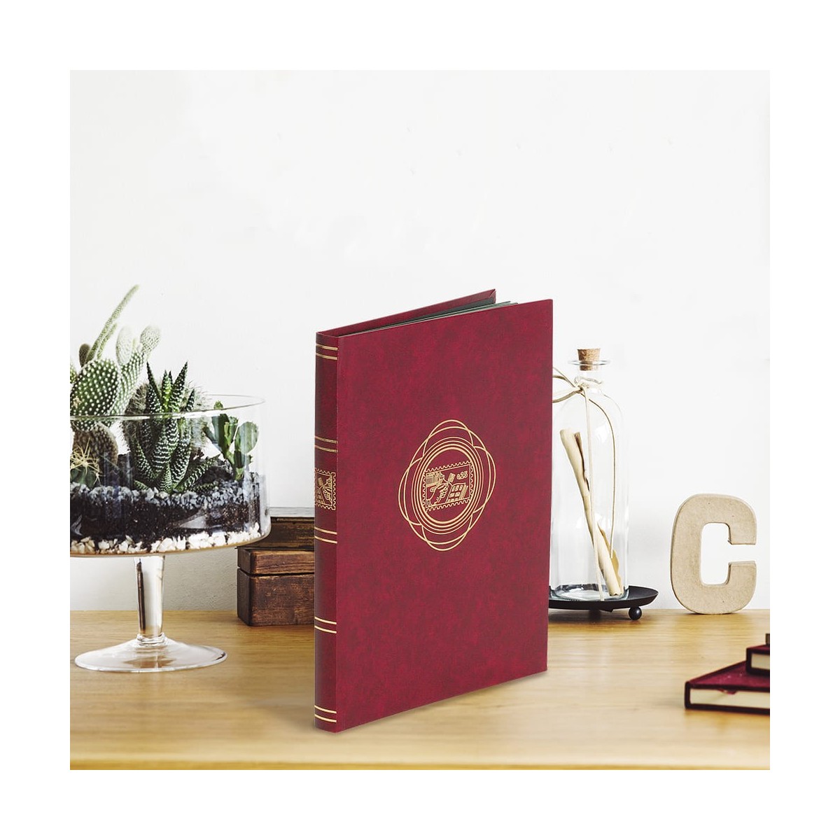 L'album Philatélie Athéna de couleur rouge est idéal pour classer précieusement plus de 1700 timbres sur ses 32 feuillets noirs protégés par un film. Sa couverture imitation cuir illustrée par des motifs dorés donne à cet album, un aspect intemporel. Dimensions (LxPxH) : 23,5x2,5x31 cm