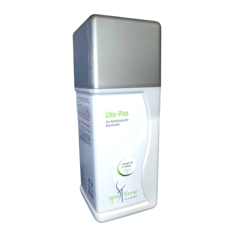 2294540 - alca-plus poudre 1kg pour spa - Alca-Plus de SpaTime augmente l'alcalinité (TAC) de l'eau de votre spa. Un TAC trop faible peut provoquer l'instabilité du pH qui devient alors difficile à réguler. L'eau peut devenir corrosive, ce qui affecterait les surfaces, comme le revêtement intérieur du spa.