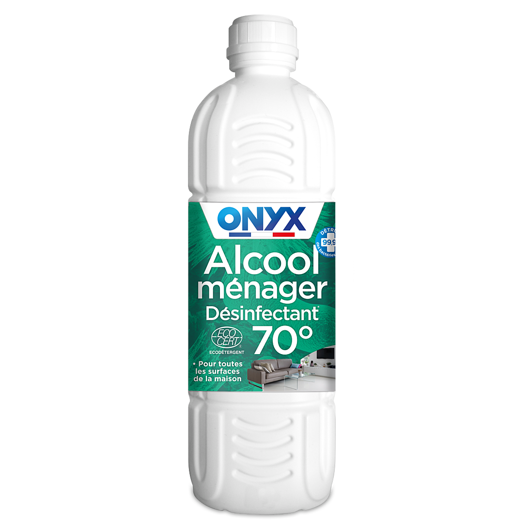 L'Alcool ménager 70° Onyx est pensé pour nettoyer, dégraisser et désinfecter* les différentes pièces de la maison. Il permet d’éliminer* 99.9% des virus et des bactéries