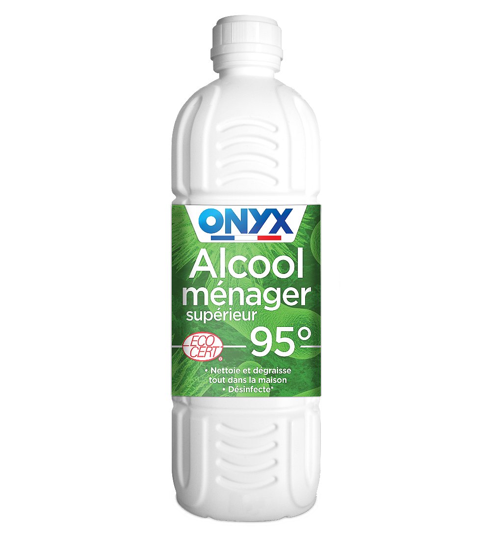 L'alcool Ménager Supérieur 95° Onyx est idéal pour désinfecter* et nettoyer les vitres, miroirs, jouets, robinetteries, ampoules électriques, touches de piano, cristal, bijoux... Retire également les taches de vin, fruits, encre, café... sur les moquettes et les tissus.
