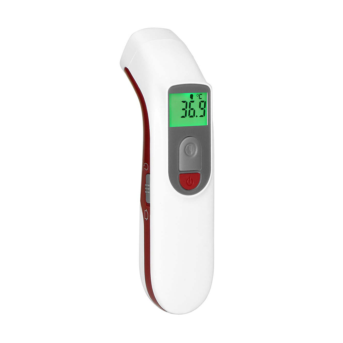 Ce thermomètre frontal à infrarouge mesure la température corporelle sans contact direct avec la peau. La prise de mesure s'effectue en 3 secondes avec affichage précis au dixième de degré. L'écran rétroéclairé améliore la lisibilité, même dans l'obscurité. Une alarme sonore et un changement de couleur de l'écran signalent la présence de fièvre. La mémoire intégrée conserve les 25 dernières mesures.