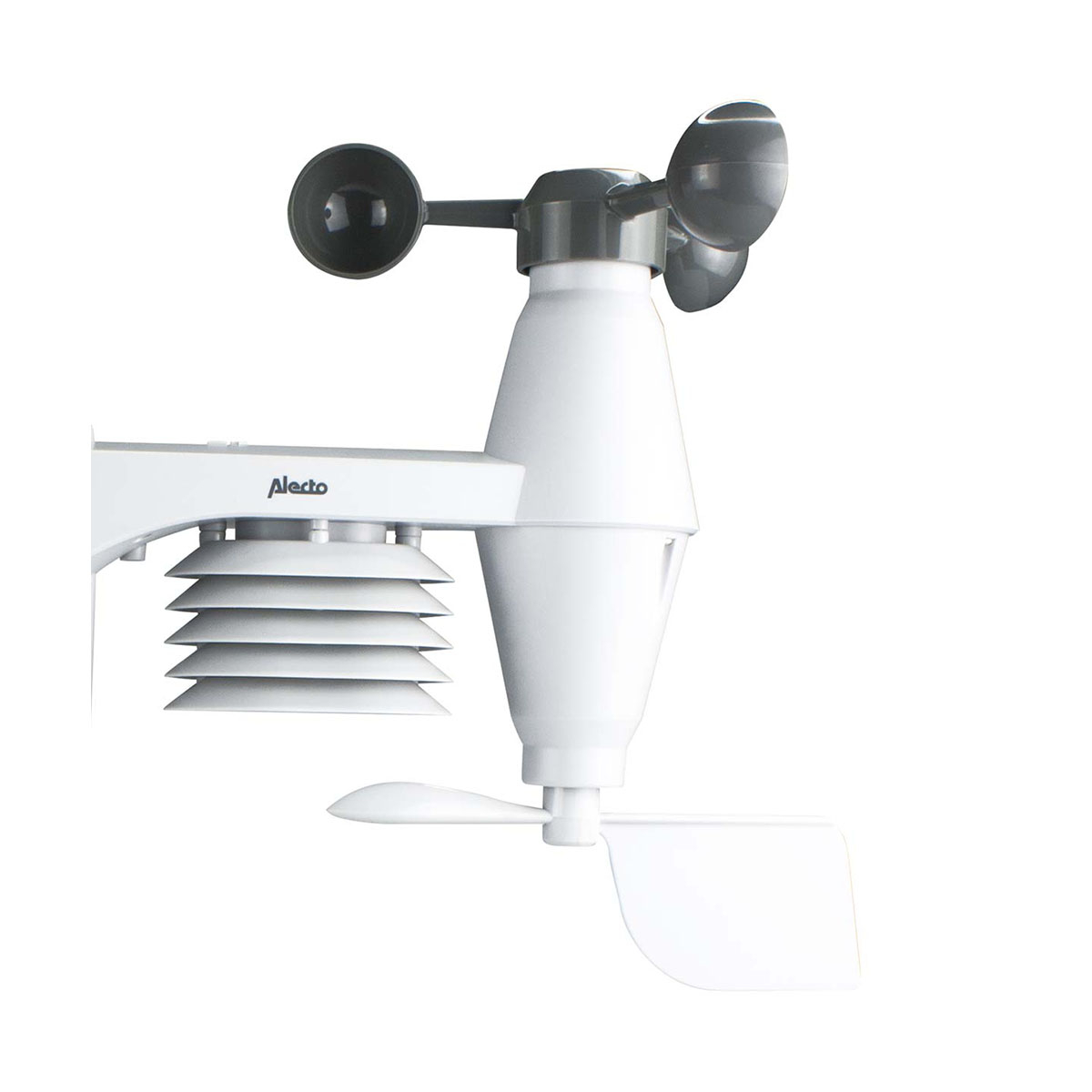 Plus produit Écran LCD rétroéclairé 5,5"; capteur extérieur sans fil 868 MHz avec anémomètre 3-cup et pluviomètre à bascule; mesure température/humidité/intérieur-extérieur, pression, précipitations et vitesse du vent; horloge radio DCF, mémoire min/max et alertes réglables; portée sans fil jusqu'à ~30 m.