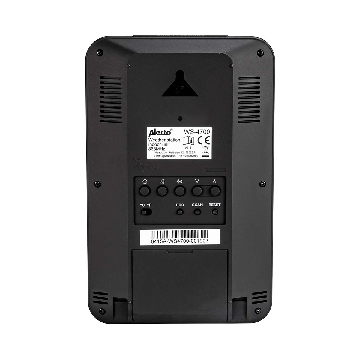 Alecto WS-4700. Couleur du produit: Noir, Fonctions de mesure: Hygromètre d'intérieur, Thermomètre d'intérieur, Baromètre d'extérieur, Hygromètre..., Station météo des données extremum: hygromètre, thermomètre. Type de batterie: AA