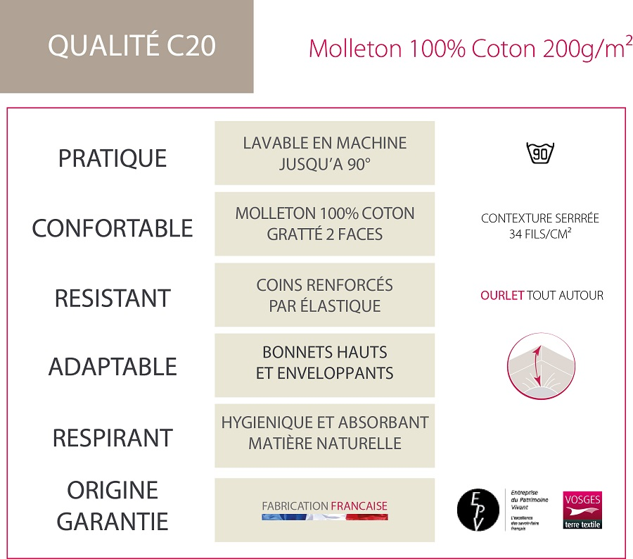 | Libellé | Alèse Housse Coton Blanc des Vosges 120x190 |