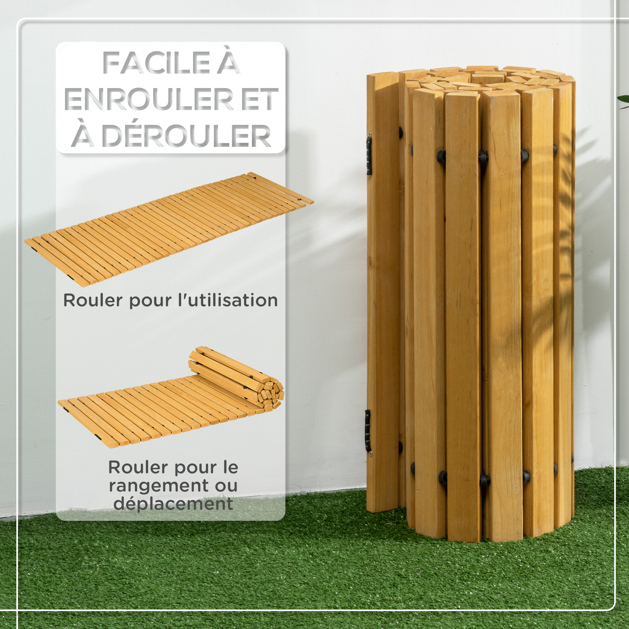 Allée chemin de jardin en lattes de bois enroulable - dim. 185L x 60l x 1,9H cm - bois de sapin pré-huilé