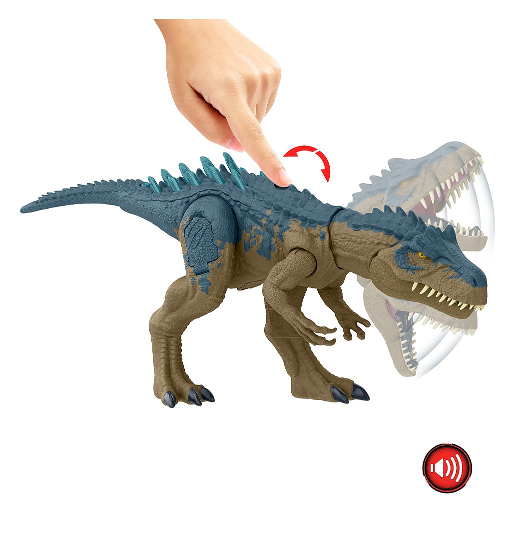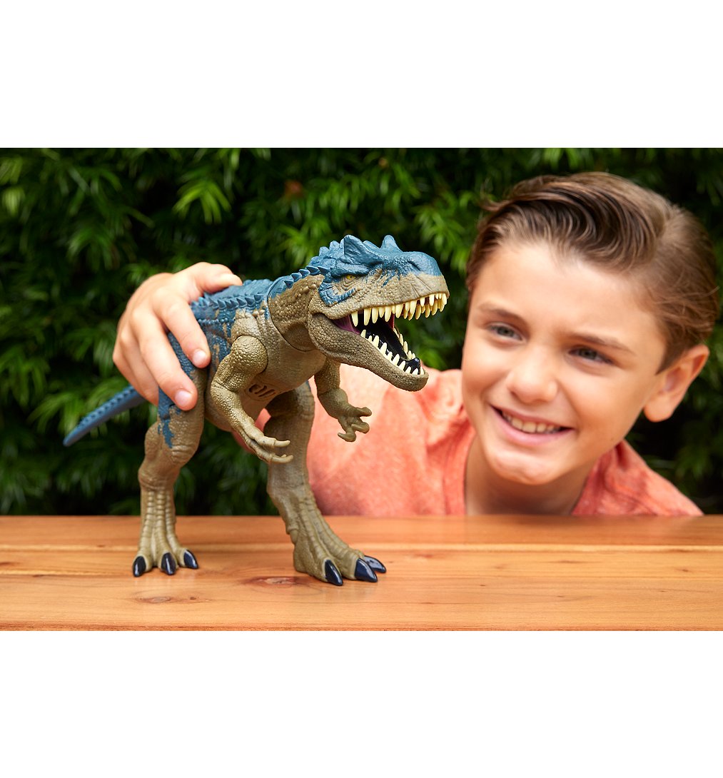 Cet Allosaurus de la collection Carnage sans pitié est un modèle Epic Evolution des figurines Jurassic World. La molette située sur le dos du dinosaure actionne un mouvement continu et réaliste : l’attaque enragée d’un dinosaure rugissant toutes mâchoires dehors ! En actionnant le bouton sur la queue, des pointes spectaculaires se soulèvent sur le dos et la queue. Ce dinosaure a évolué pour se battre ! Cette figurine articulée de 43 cm est dotée d’une matière texturée ornée d’un motif style rivière. Dans l’application gratuite Jurassic World, scannez le code de suivi dissimulé à l’aide d’un appareil connecté compatible (Android et iOS, non inclus) pour débloquer des expériences en réalité augmentée et des jeux ultra-divertissants ! Pour les fans de 4 ans et plus. Les couleurs et les décorations peuvent varier.