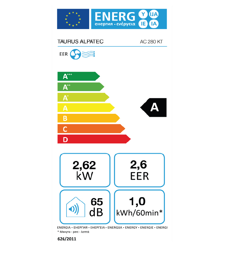 ALPATEC AC280 KT. Classe d'efficacité énergétique (refroidissement): A, Consommation énergétique horaire (refroidissement): 1 kWh, Charge connectée: 2640 W. Couleur du produit: Noir, Blanc. Largeur: 380 mm, Profondeur: 370 mm, Hauteur: 790 mm