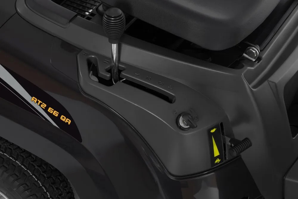 AT2 66 QA est un véhicule compact qui se démarque par sa maniabilité et saura être un plaisir de conduite! Un moteur monocylindre STIGA 224 cm3 ST 250 ES est fourni avec une puissance de 3,6 kW. La conception OHV signifie que vous profiterez d’un fonctionnement silencieux et peu polluant et de coûts de carburant agréablement bas. L'AT2 66 QA, offre une polyvalence sans pareille et dispose d'un réglage de la hauteur de coupe à cinq positions. Le volant ergonomique Alpina et le siège Alpina Smart avec support au bas du dos offrent un confort de conduite supérieur.