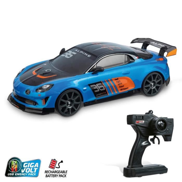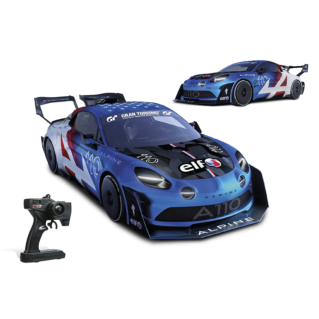 Réplique radiocommandée de l'Alpine A110, dans la version spécialement conçue pour la célèbre course de côte américaine de Pikes Peak. Échelle : 1/10ème (49 cm) Commande "toutes directions" : avant, arrière, gauche et droite Vitesse : 20 km/h Fréquence : 2,4 GHz Prêt à rouler : Batterie rechargeable (USB) + 2 piles LR6 "AA" fournies Carrosserie : Lexan body (plastique souple)