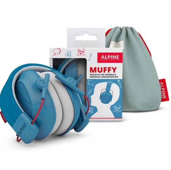 Alpine MKIDS-BL - Casque auditif enfant Muffy Kids - Bleu Muffy Kids, casque auditif spécialement conçu pour les enfants à partir de 5 ans, atténuation 25 dB, bandeau souple réglable, matériaux de haute qualité, poids léger, sac de transport Alpine Protect&Go.