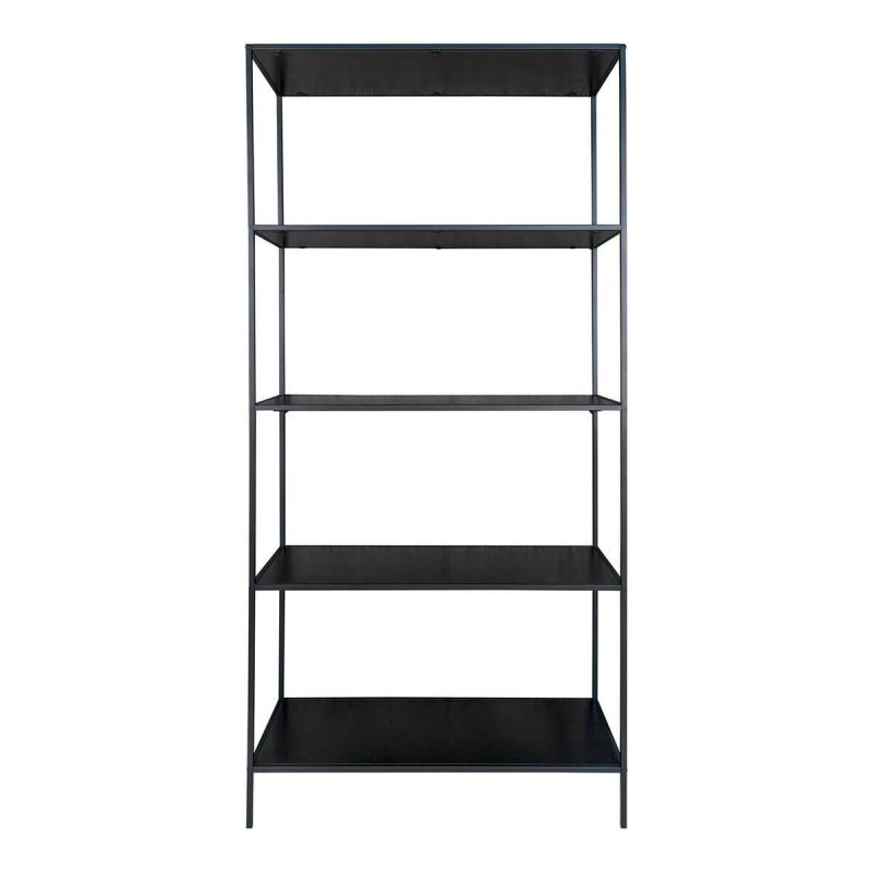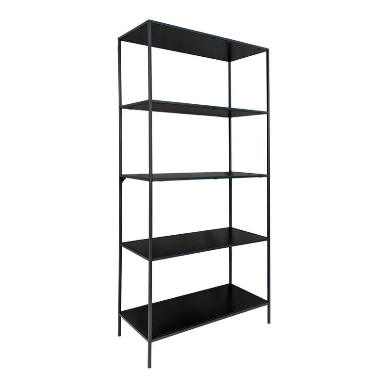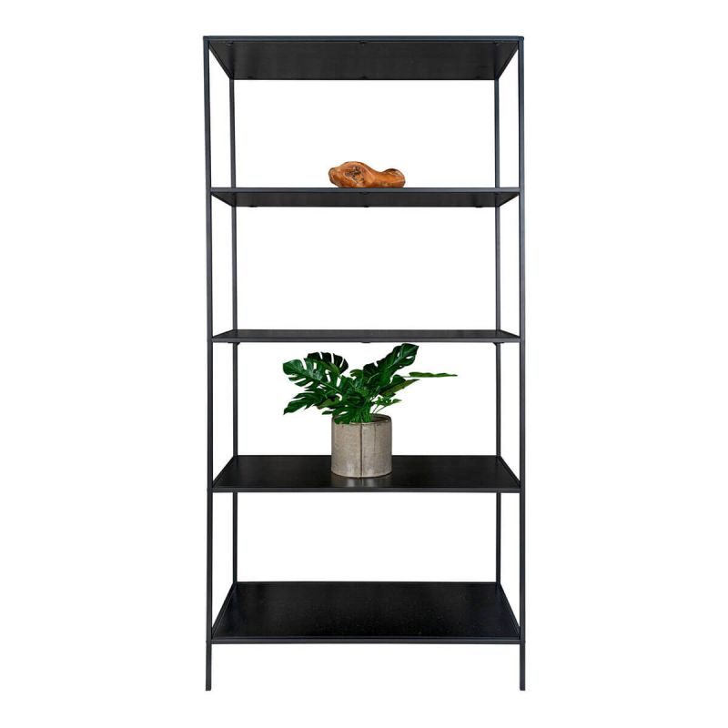 Etagère Large 5 Plateaux Acier Noir et Aspect Bois Noir Harald. Pour un intérieur au look industriel à la fois élégant et pratique, découvrez le reste de la gamme Harald. Une grande étagère verticale pour exposer vos plus belles décorations dans la pièce de votre choix.