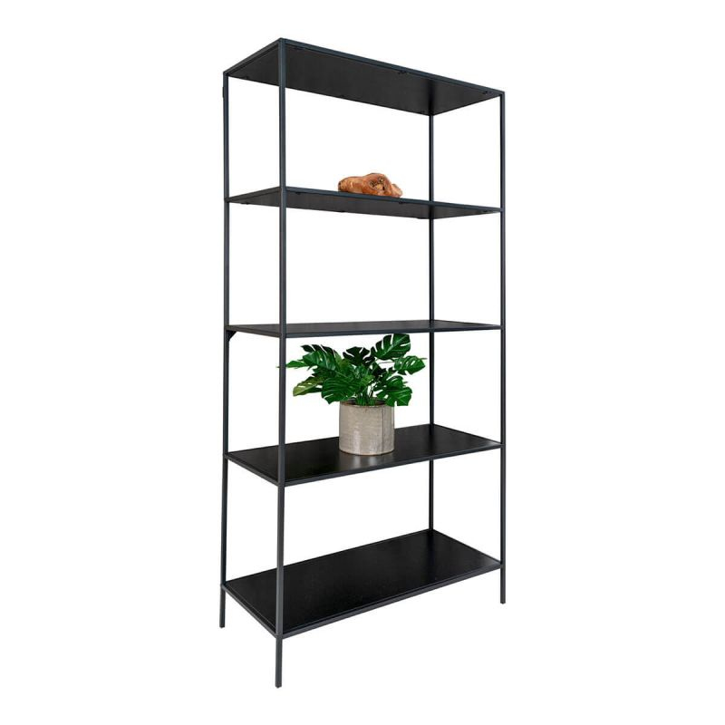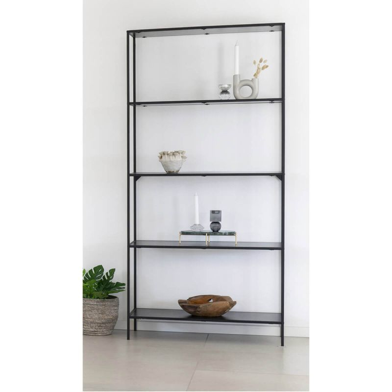 | Plus produit | Etagère Large 5 Plateaux Acier Noir et Aspect Bois Noir Harald. Pour un intérieur au look industriel à la fois élégant et pratique, découvrez le reste de la gamme Harald. |