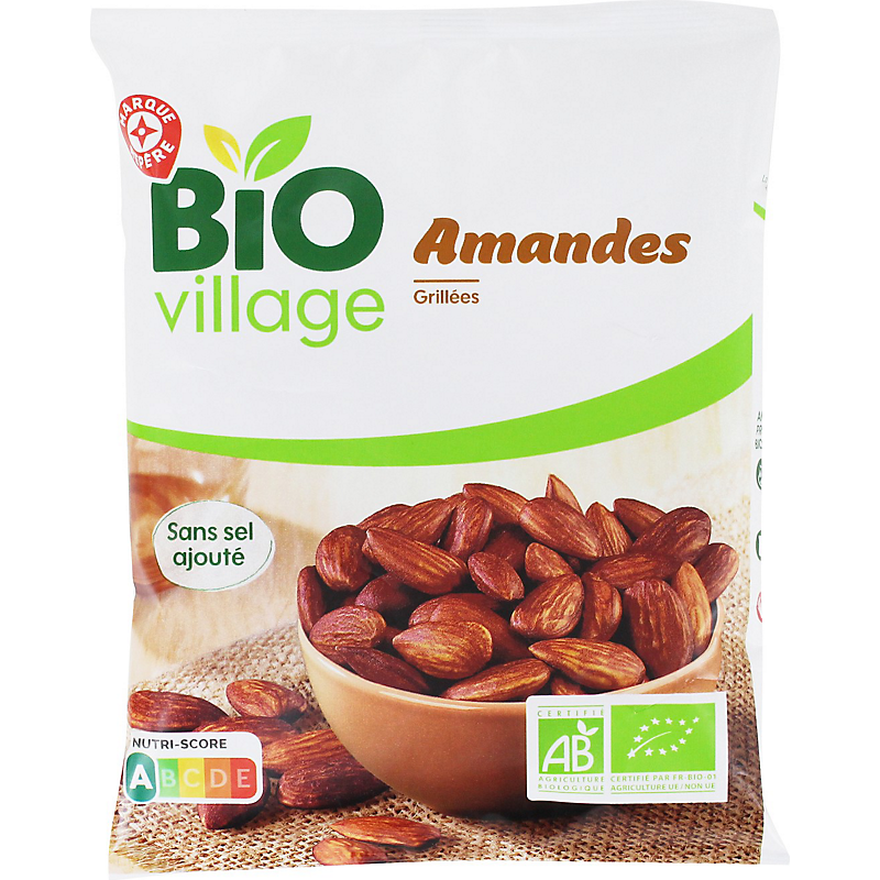 Amandes grillées sans sel ajouté - Produit issu de l'agriculture biologique BIO VILLAGE