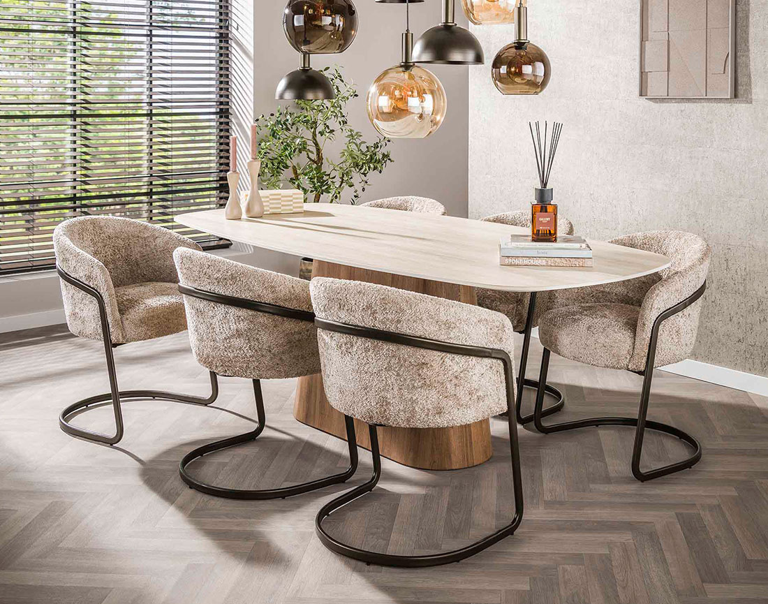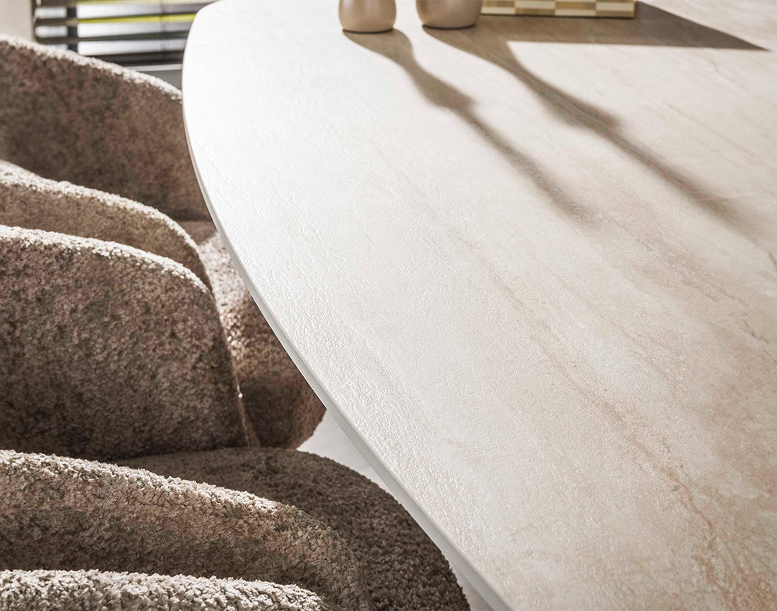 Pensée pour durer, la table à manger Amara résiste à la chaleur et aux rayures, garantissant une belle apparence au fil du temps. Son plateau effet travertin imite à la perfection la pierre naturelle tout en étant plus léger et pratique à vivre. Parfaite pour recevoir sans contrainte, elle combine design, robustesse et facilité d’entretien pour un usage aussi agréable que durable.