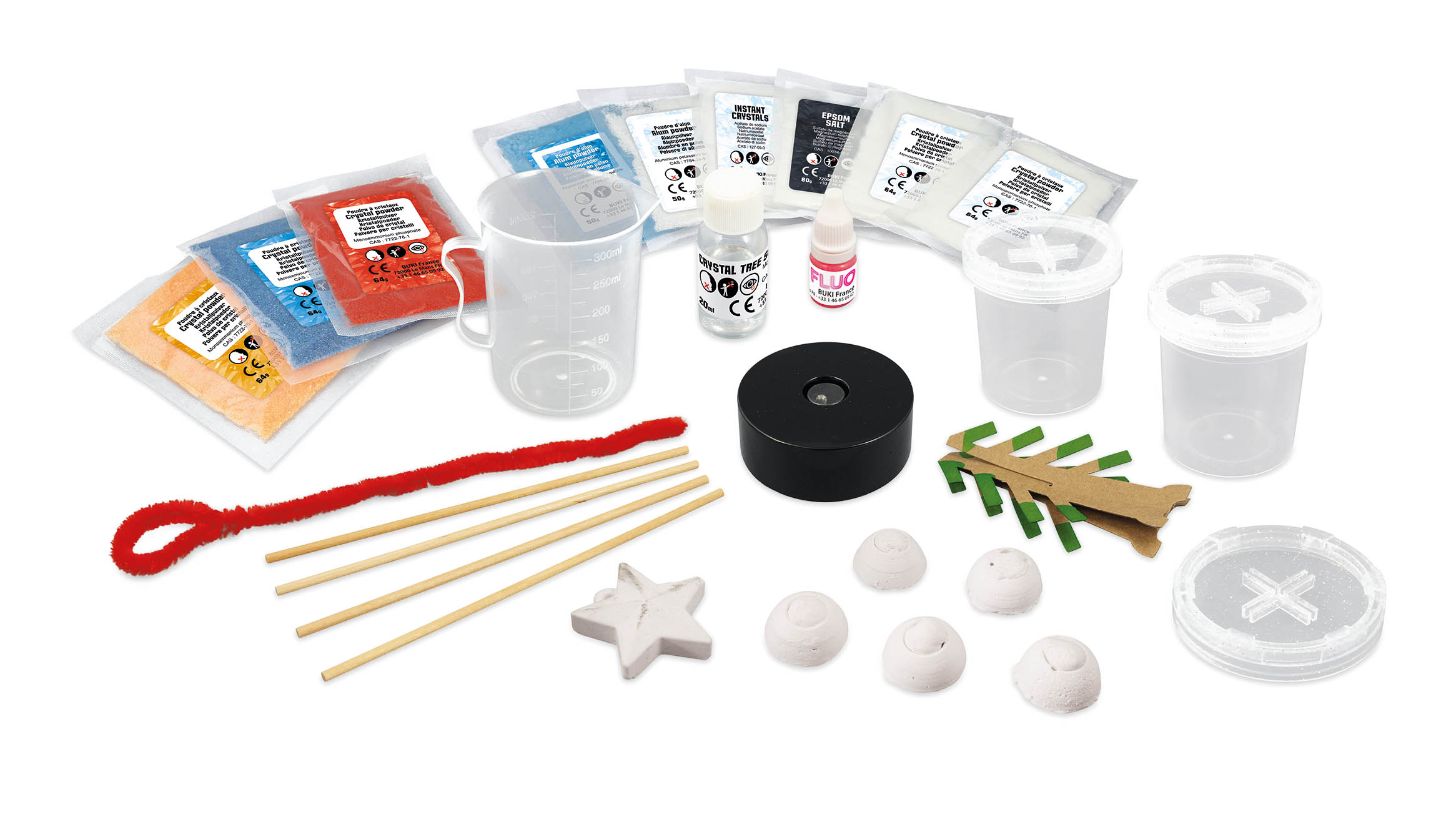 Cultive 12 étonnants et magnifiques cristaux : découvre l’arbre à cristaux instantanés, réalise un bijou cristallisé ou fais pousser un méga cristal. Place tes cristaux sur la base lumineuse et regarde la lumière transpercer le cristal ! Les activités sont réalisées à l’aide d’un four micro-ondes pour plus de rapidité et de sécurité. Notice illustrée en couleurs. Dès 8 ans. Nécessite 3 piles LR03 non incluses.