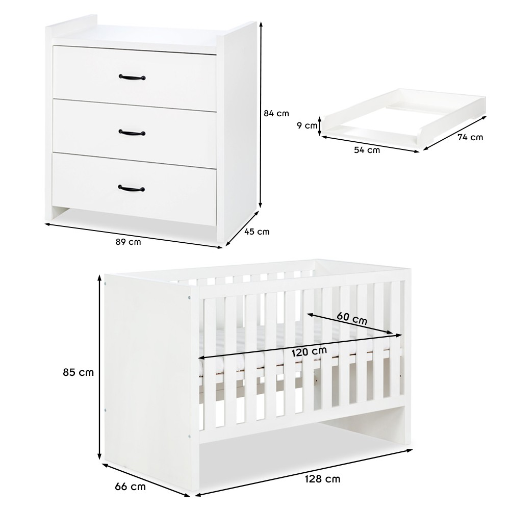 | Libellé | AMELIA Ensemble bébé commode à langer et lit évolutif 120X60 Blanc |