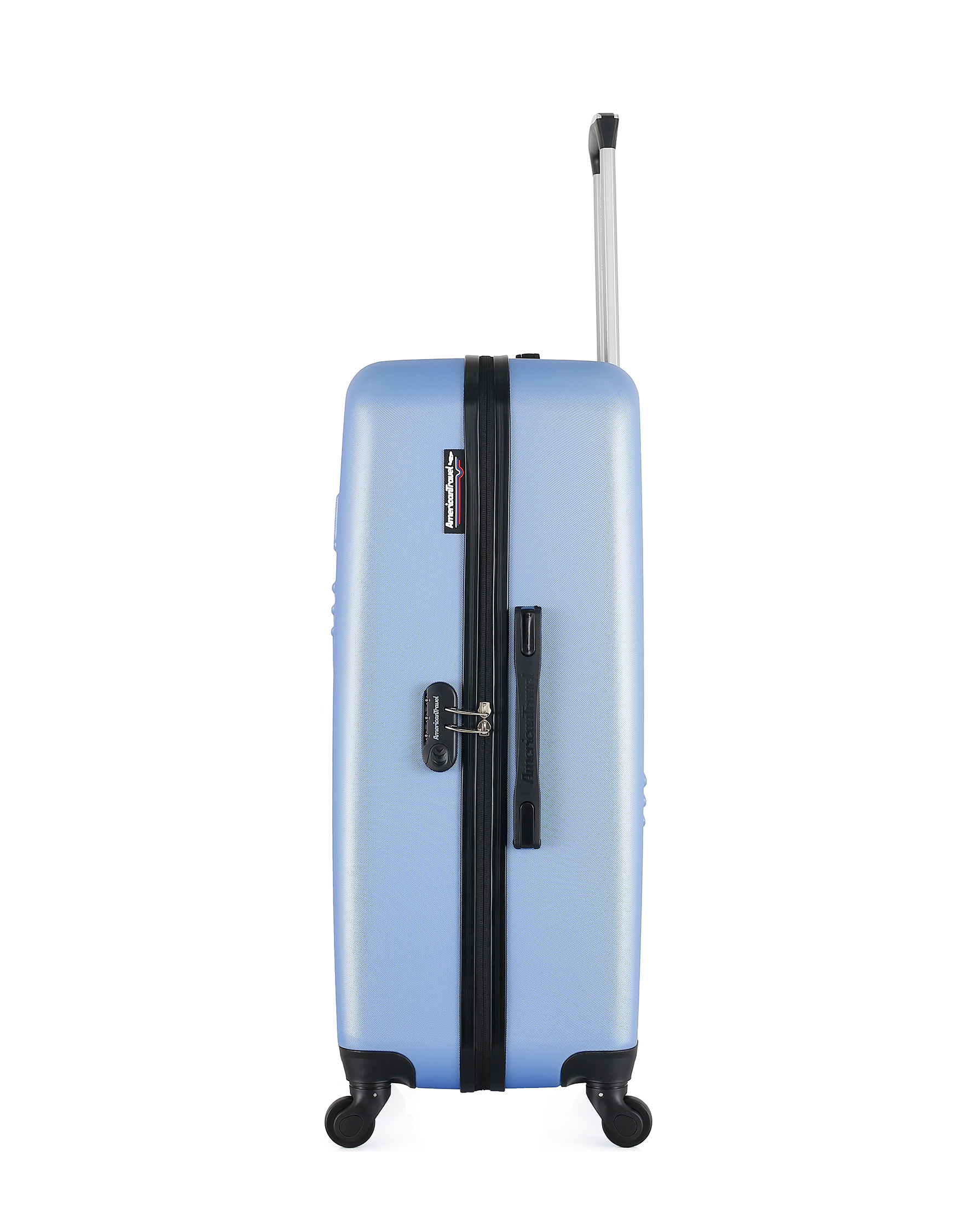Fabriquée en plastique ABS résistant, la valise grand format CHELSEA d'American Travel peut supporter les chocs et les chutes tout en gardant tous vos effets personnels en sécurité à l'intérieur de sa coque rigide.