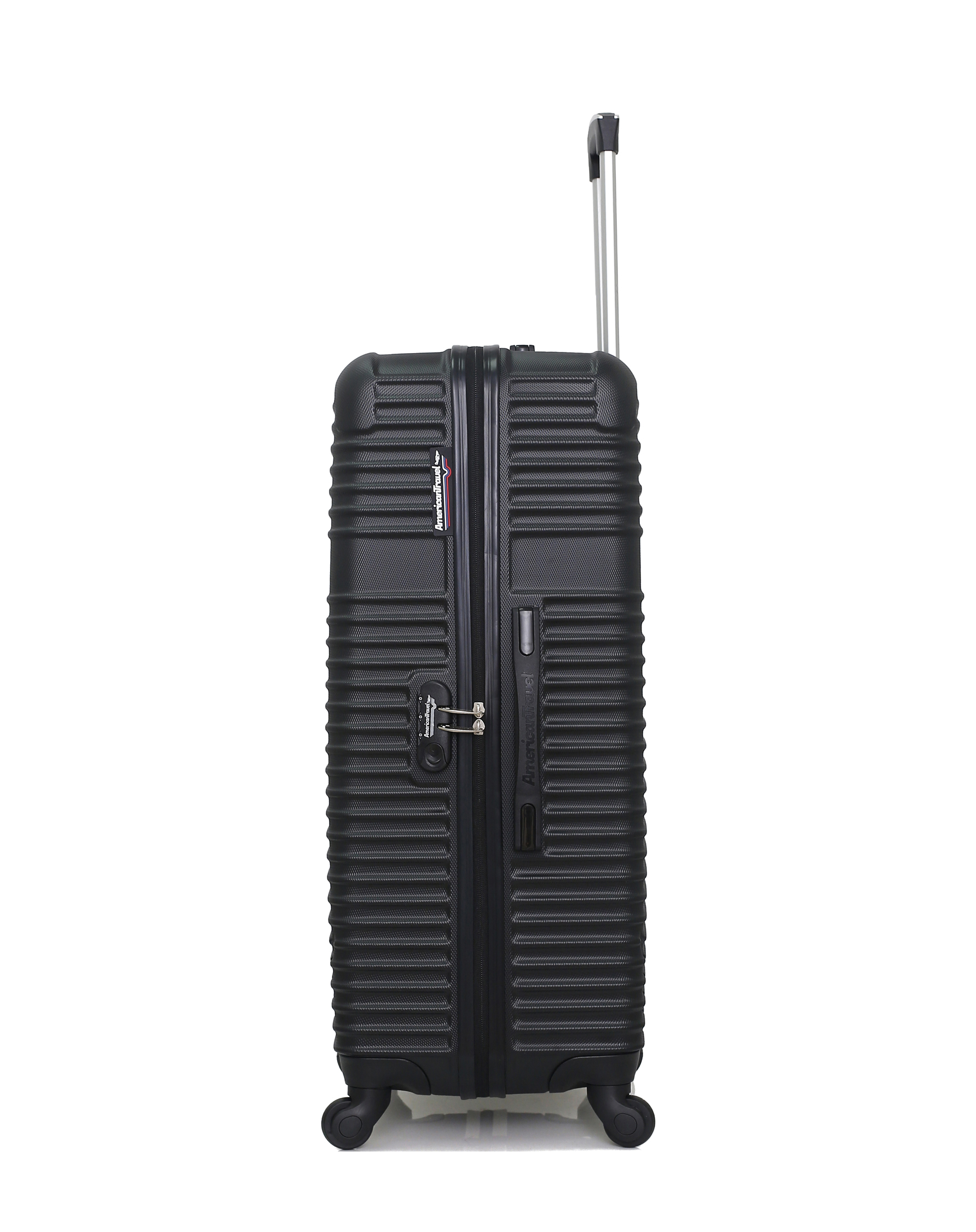 Venez découvrir la valise grand format MEMPHIS d'American Travel au un beau design avec des finitions de haute qualité qui assureront votre satisfaction. Cette valise rigide est dotée d'une serrure à combinaison à trois chiffres, d'une doublure en polyester durable avec le logo de la marque, et des sangles de maintien qui garderont vos habits en place durant le voyage.