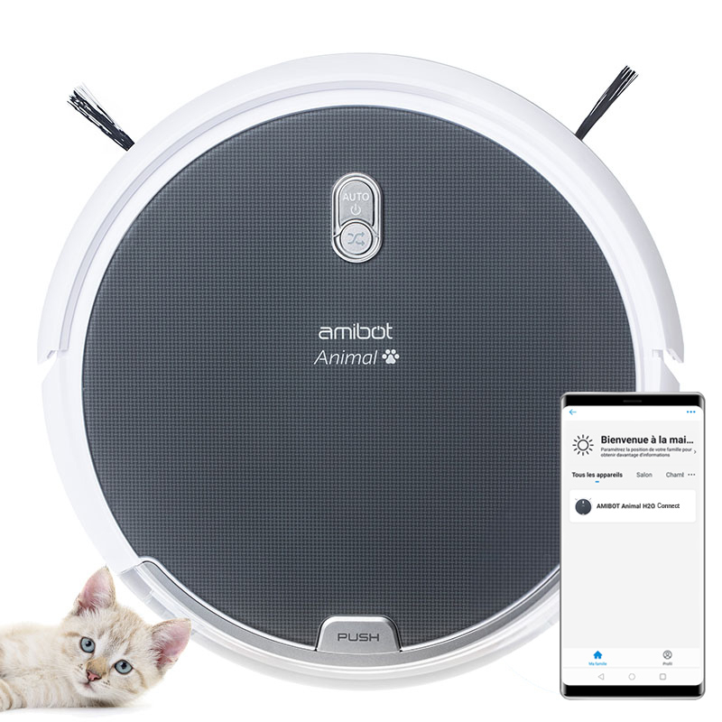 AMIBOT Animal H2O Connect - Robots Aspirateurs et laveurs connecté IOS/Android spécial poils d'animaux