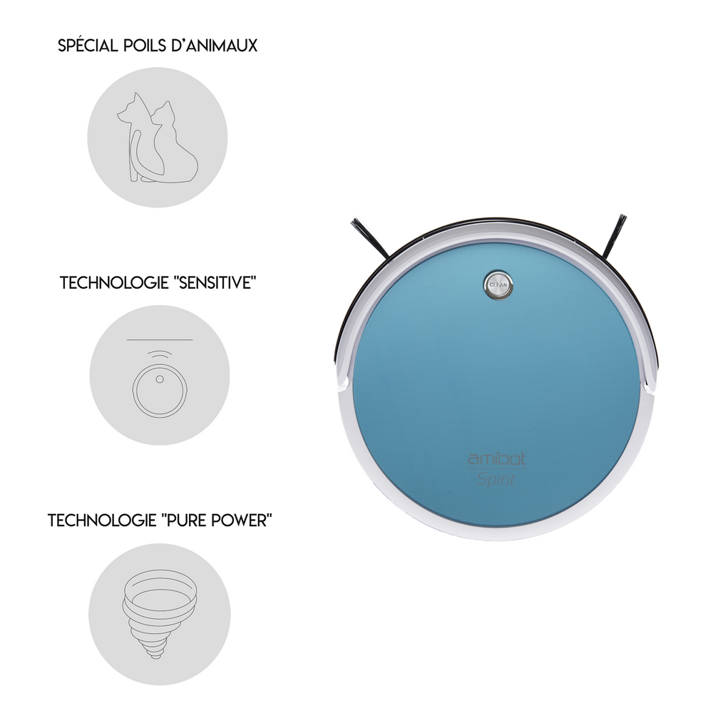 Le robot AMIBOT Spirit dispose d'un moteur ultra puissant, pour prendre en charge tous types de débris dès le premier passage. Son aspiration "Pure Power" vient à bout saletés présentes dans une maison, dont les poils d'animaux et cheveux.