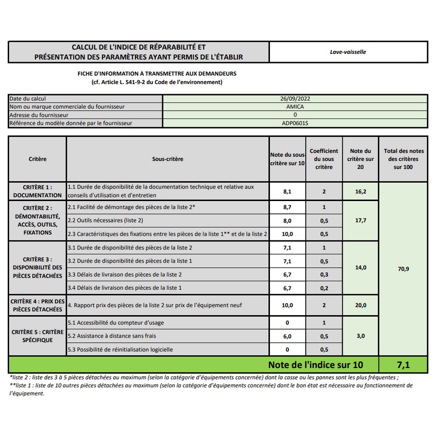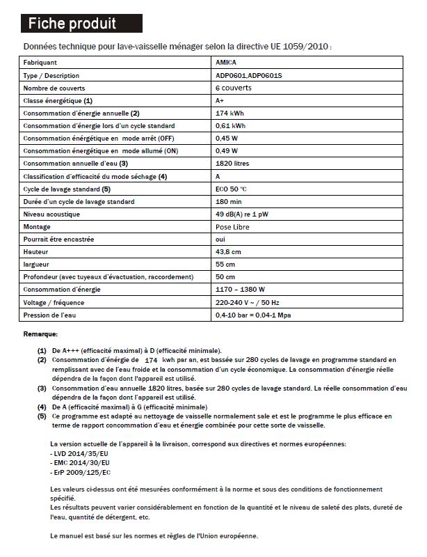 | Libellé | Amica ADP0601S lave-vaisselle Pose libre 6 couverts F |