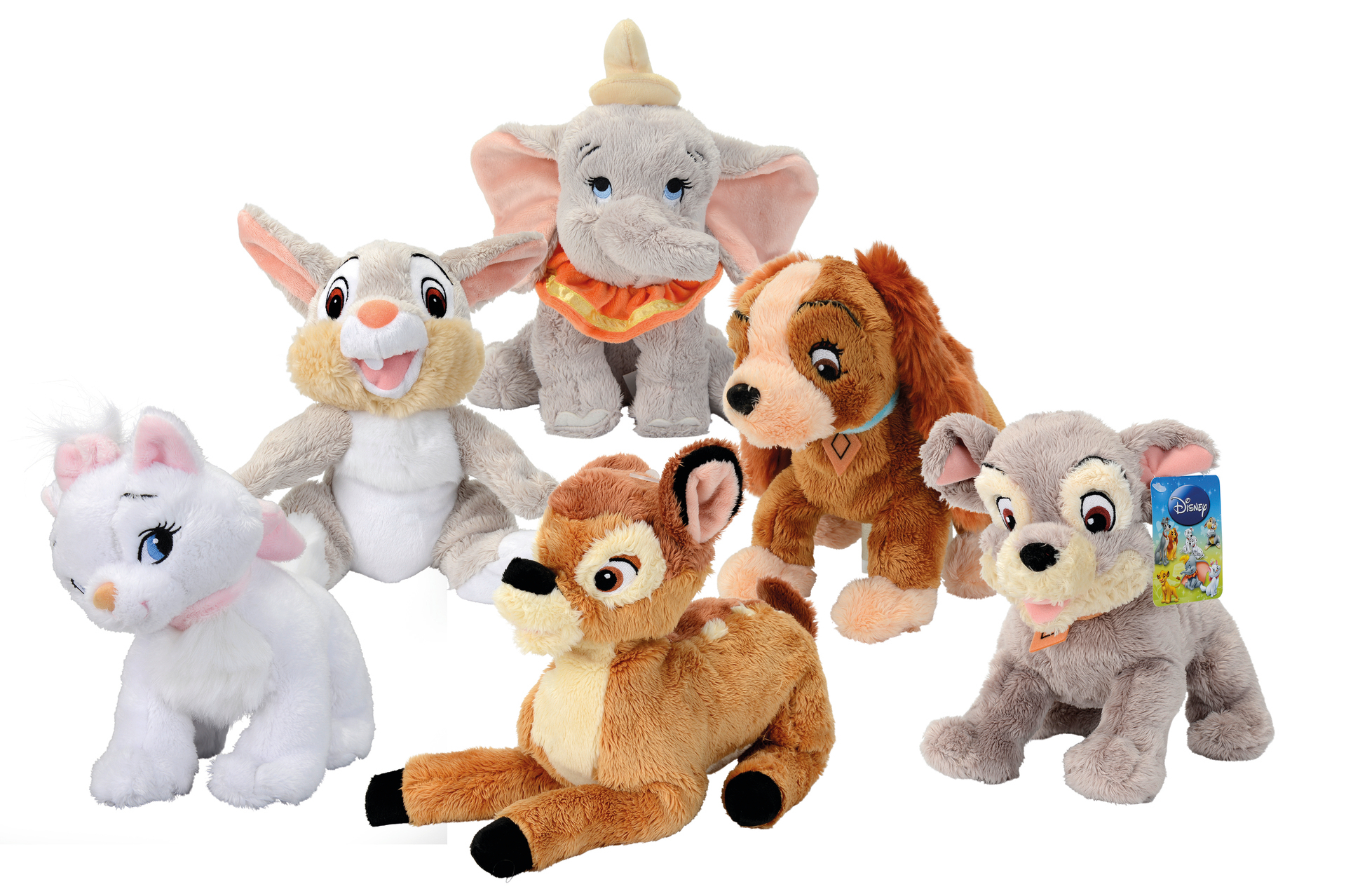 peluche amis animaux disney 25 cm. Existe en bambi ou dumbo ou marie ou panpan ou belle ou clochard