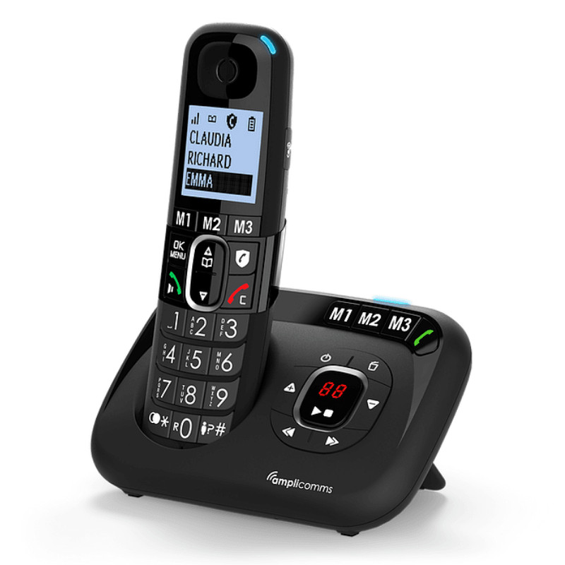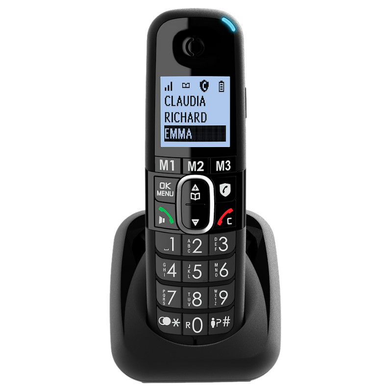 - Depuis la base de la version répondeur: répondez directement aux appels en mode mains-libres et appelez les 3 mémoires directes M1 à M3 même en l'absence du combiné sur son socle.
